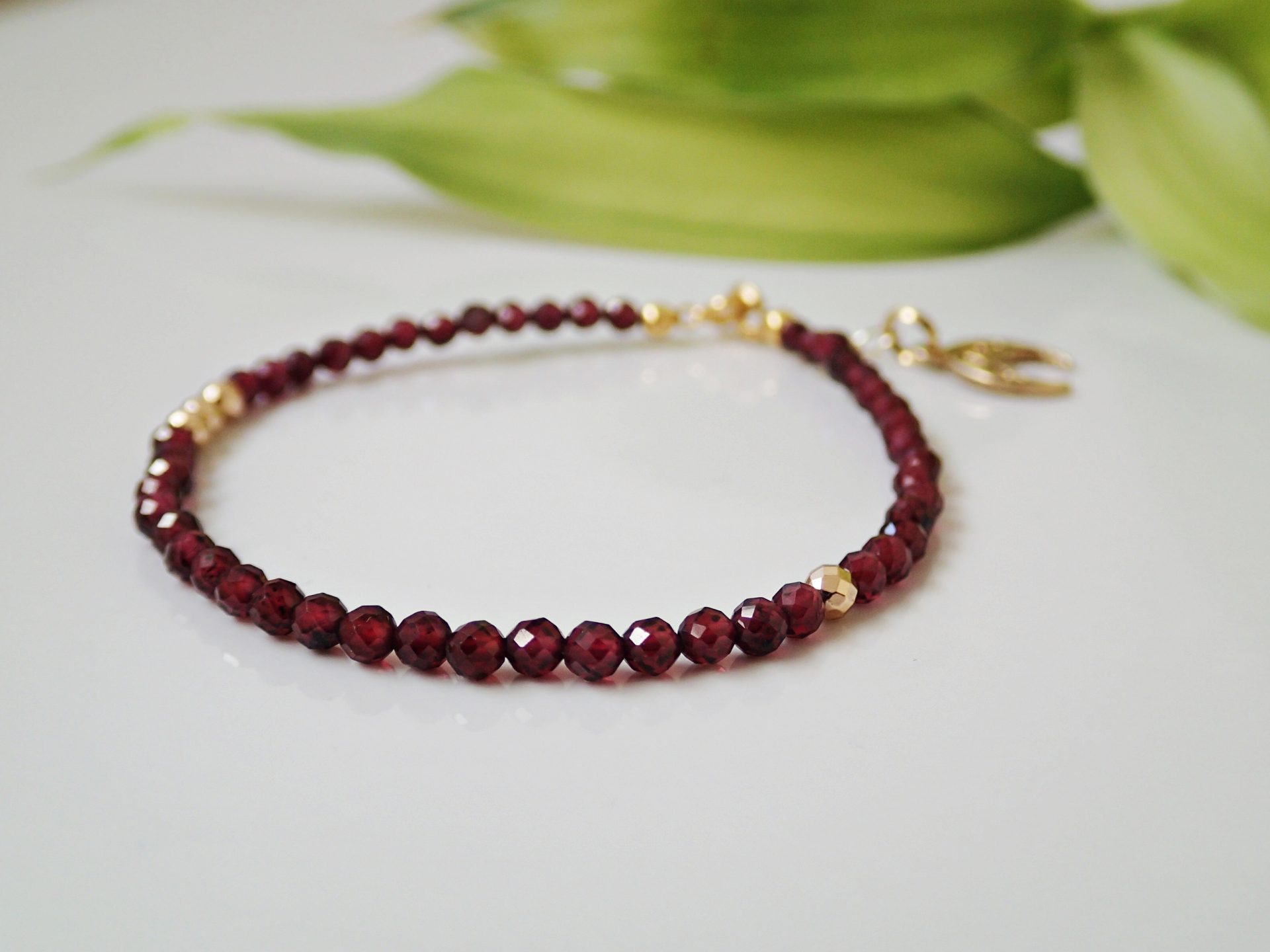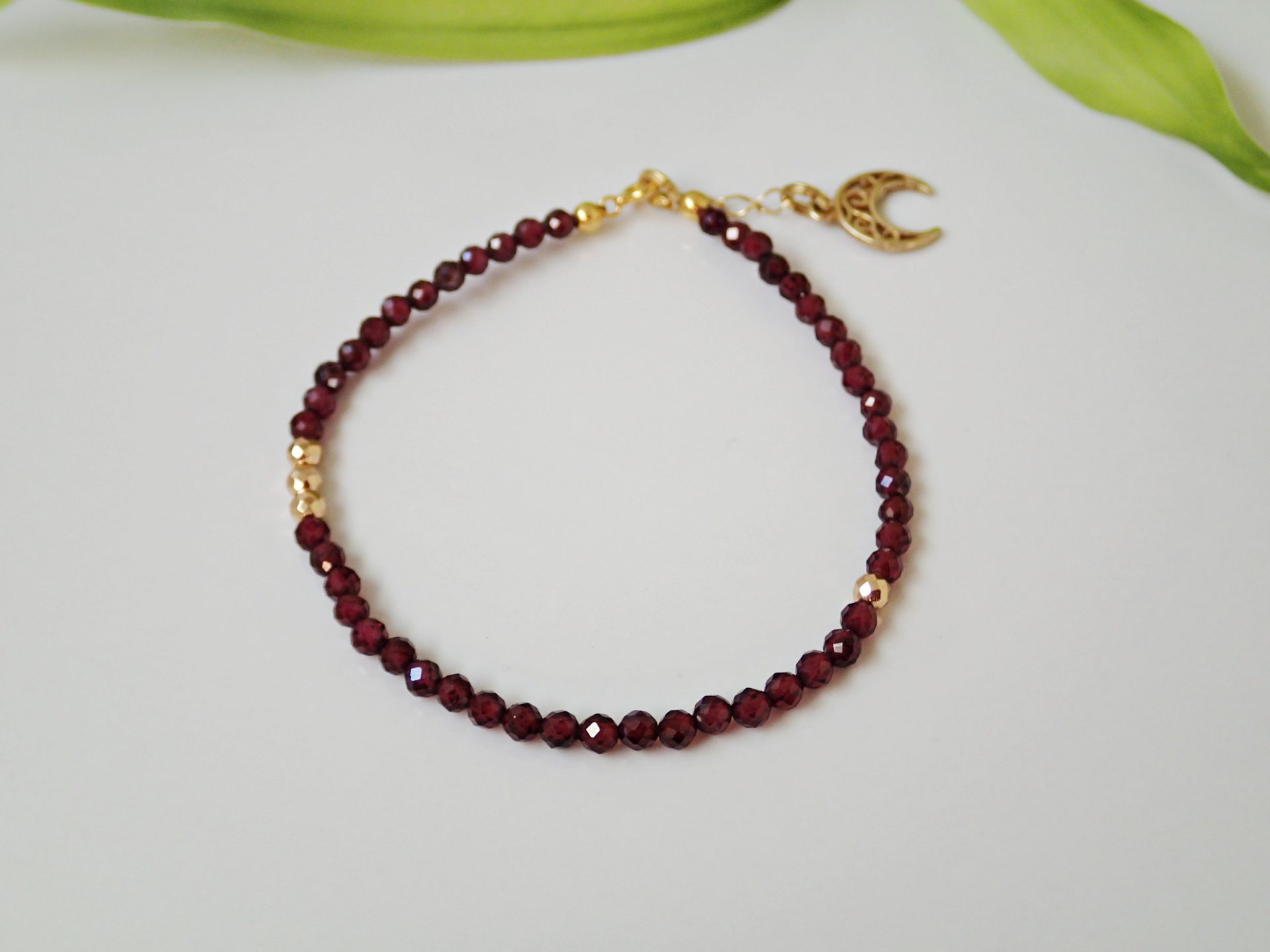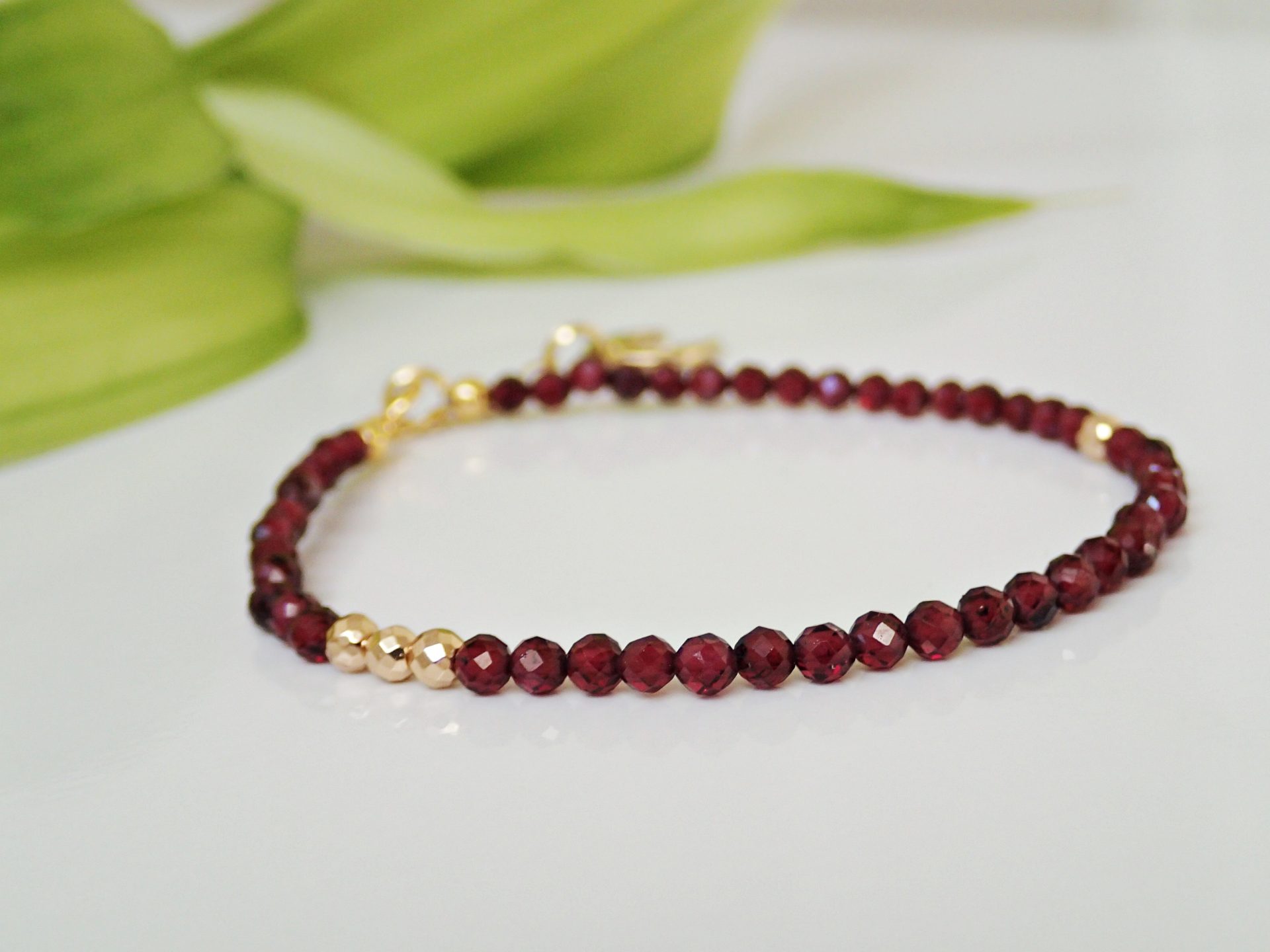 Handgemachtes Armband aus Edelstein Granat und Hämatit in Goldfarbe.