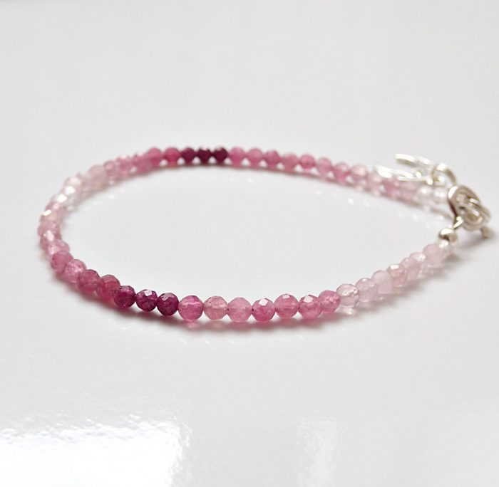Handgefertigtes, einzigartiges Armband mit Schattierungseffekt aus speziell ausgewählten Natursteinen in Rosatönen: