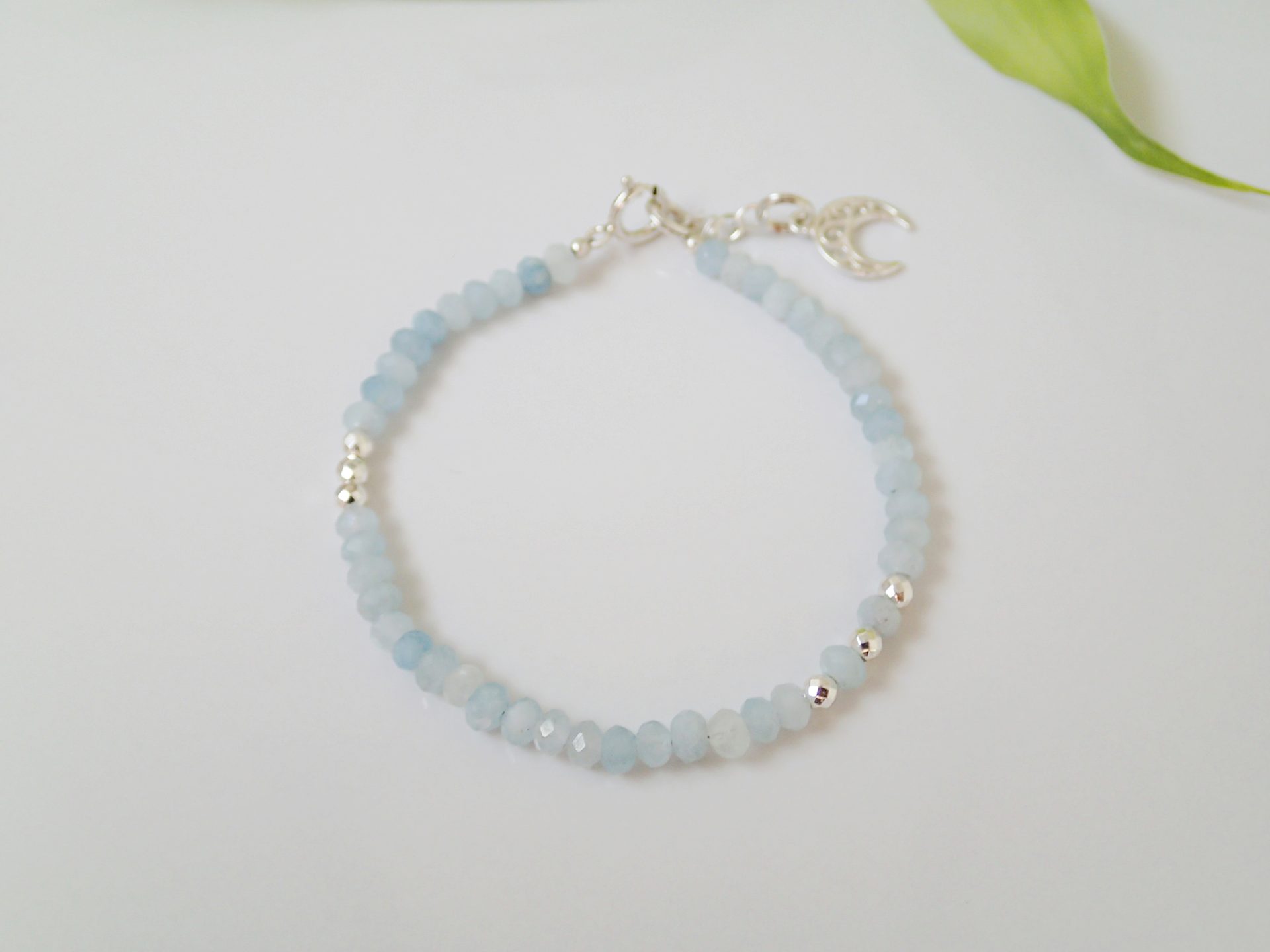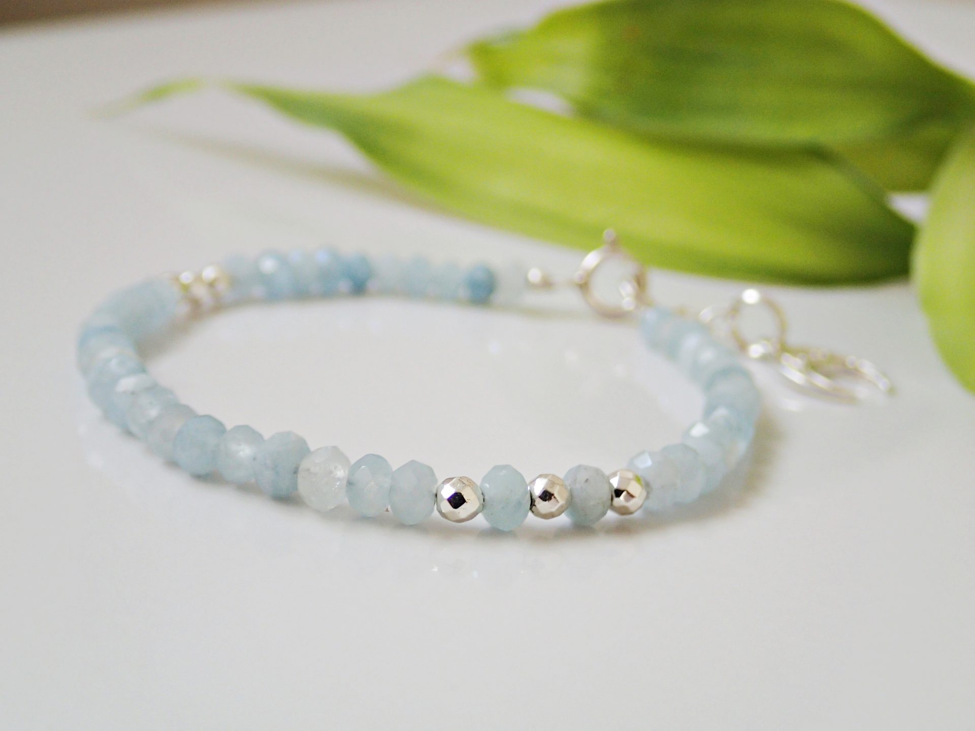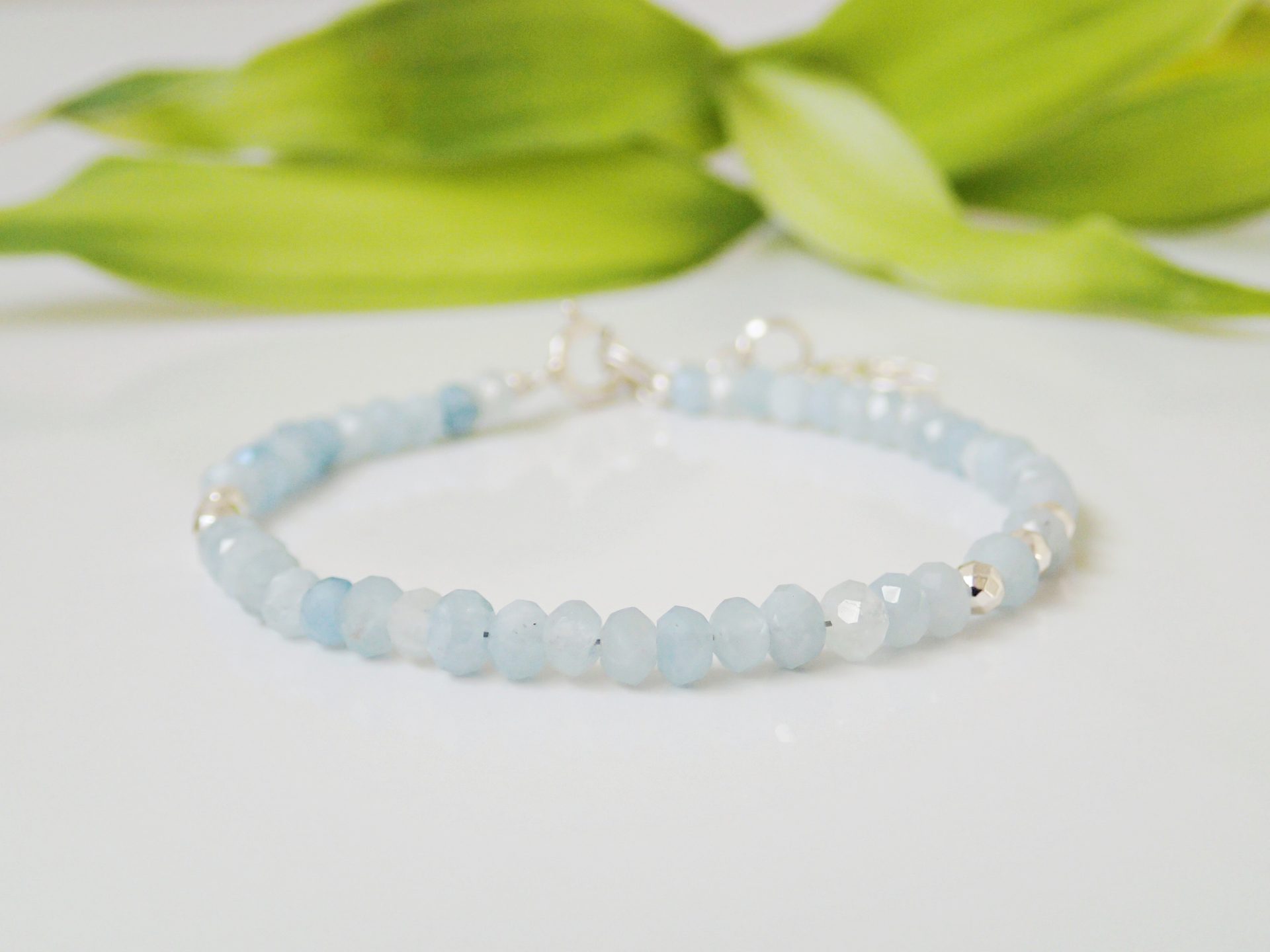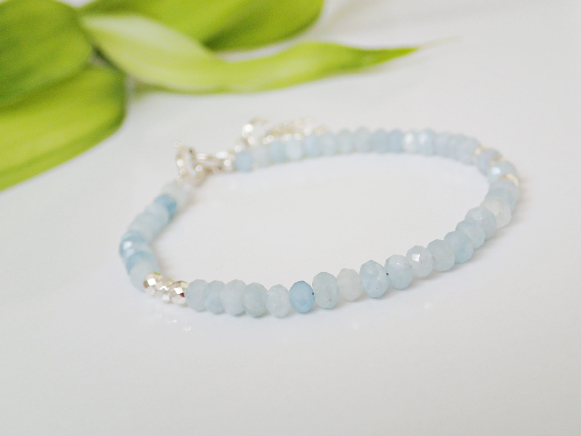Handgemachtes Armband aus natürlichem Aquamarin und Hämatit in Silber.
