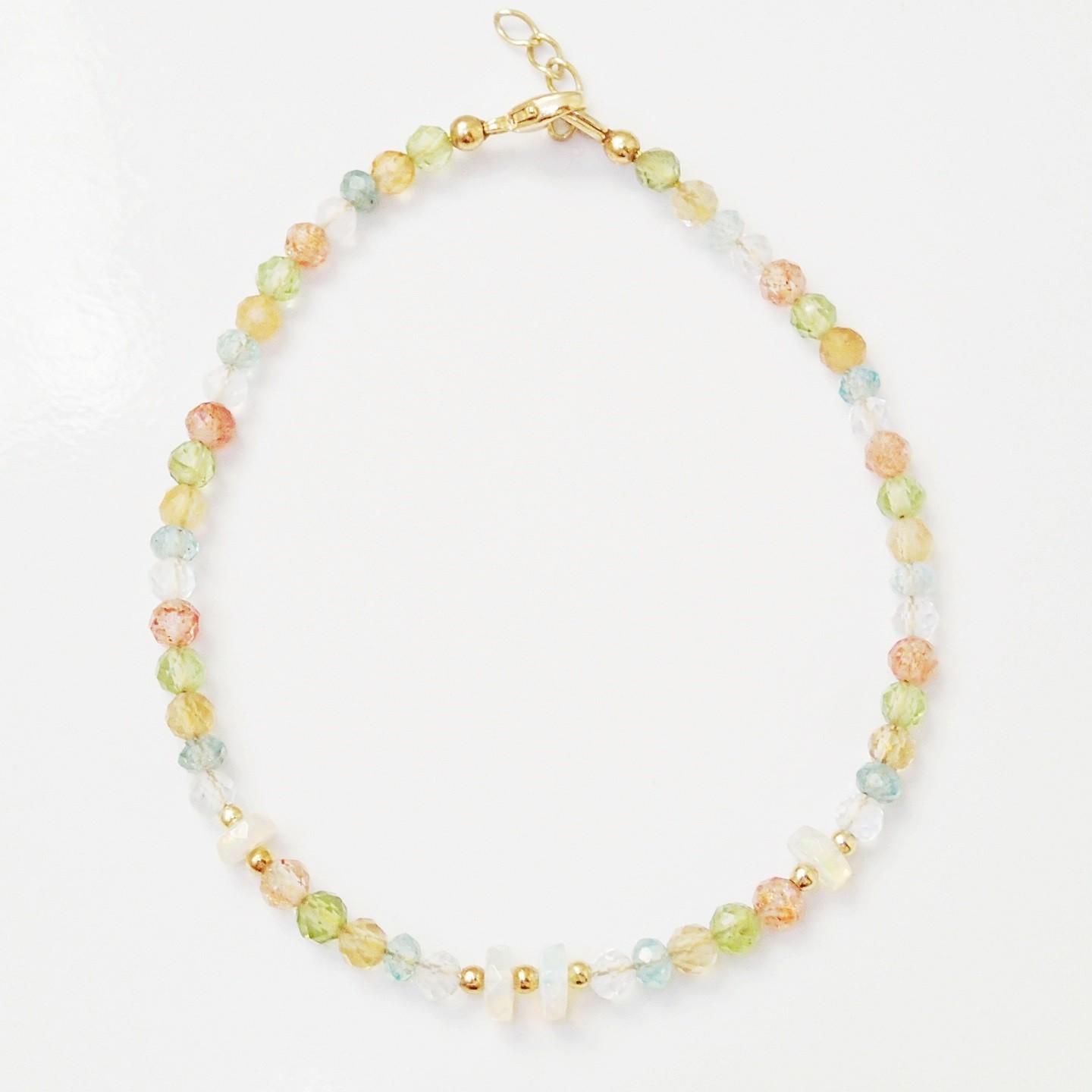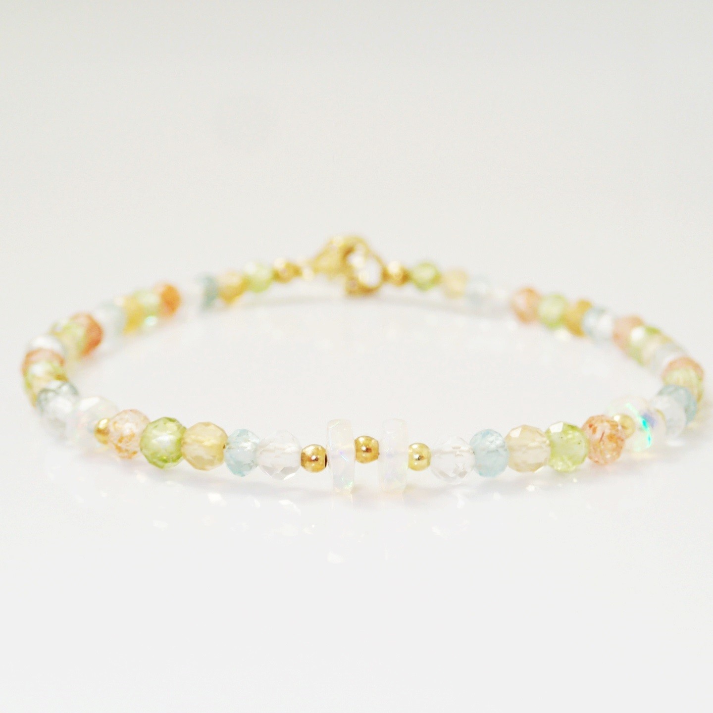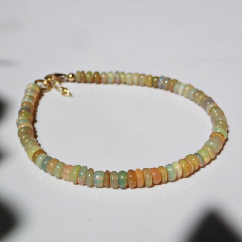 Einzigartiges, handgefertigtes Armband aus Natursteinen: Opal Welo, Bergkristall, Apatit, Citrin, Peridot und Sonnenstein. Opal mit starken, klaren Funken, die auf dem ersten Foto und in den Videos auf Instagram zu sehen sind (leider fängt meine Kamera nicht so gut Funken wie das Telefon). Schließe aus Silber (925) oder versilbert mit 24 Karat Gold.