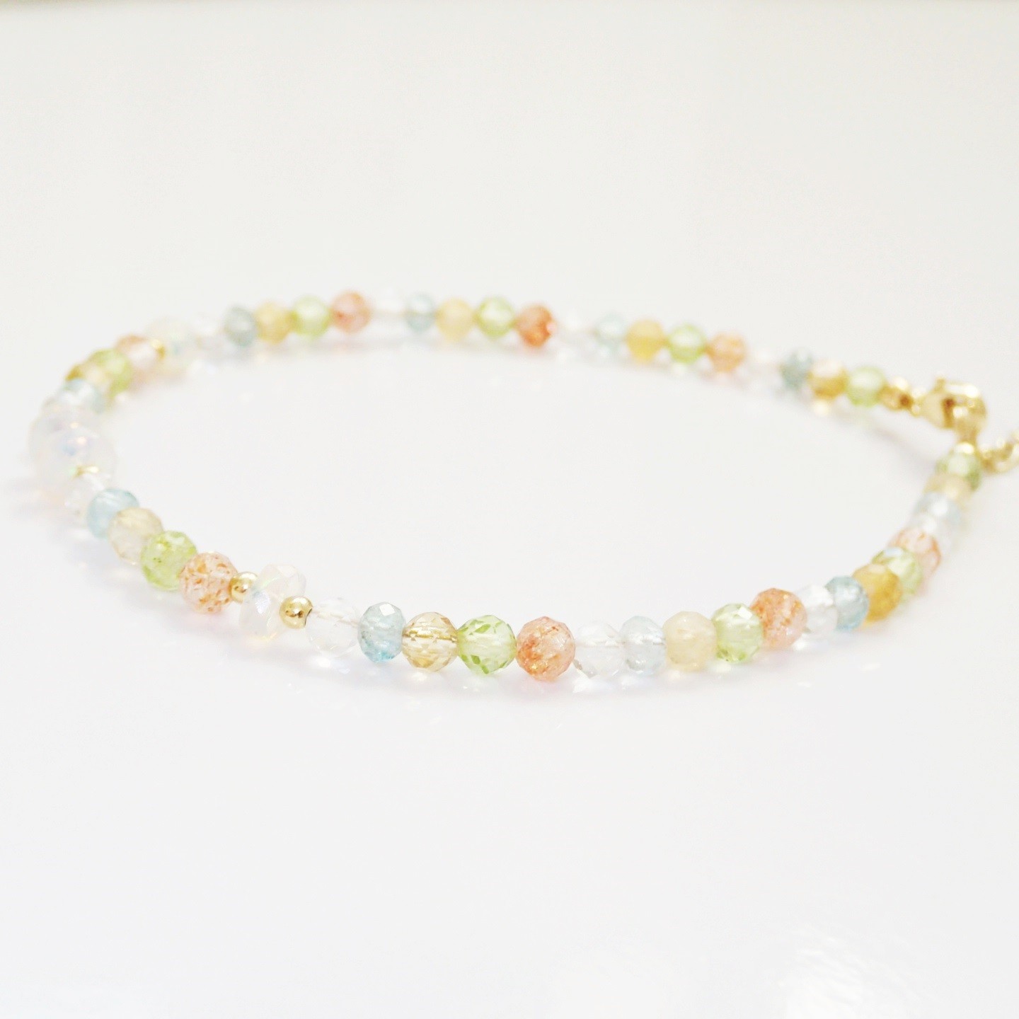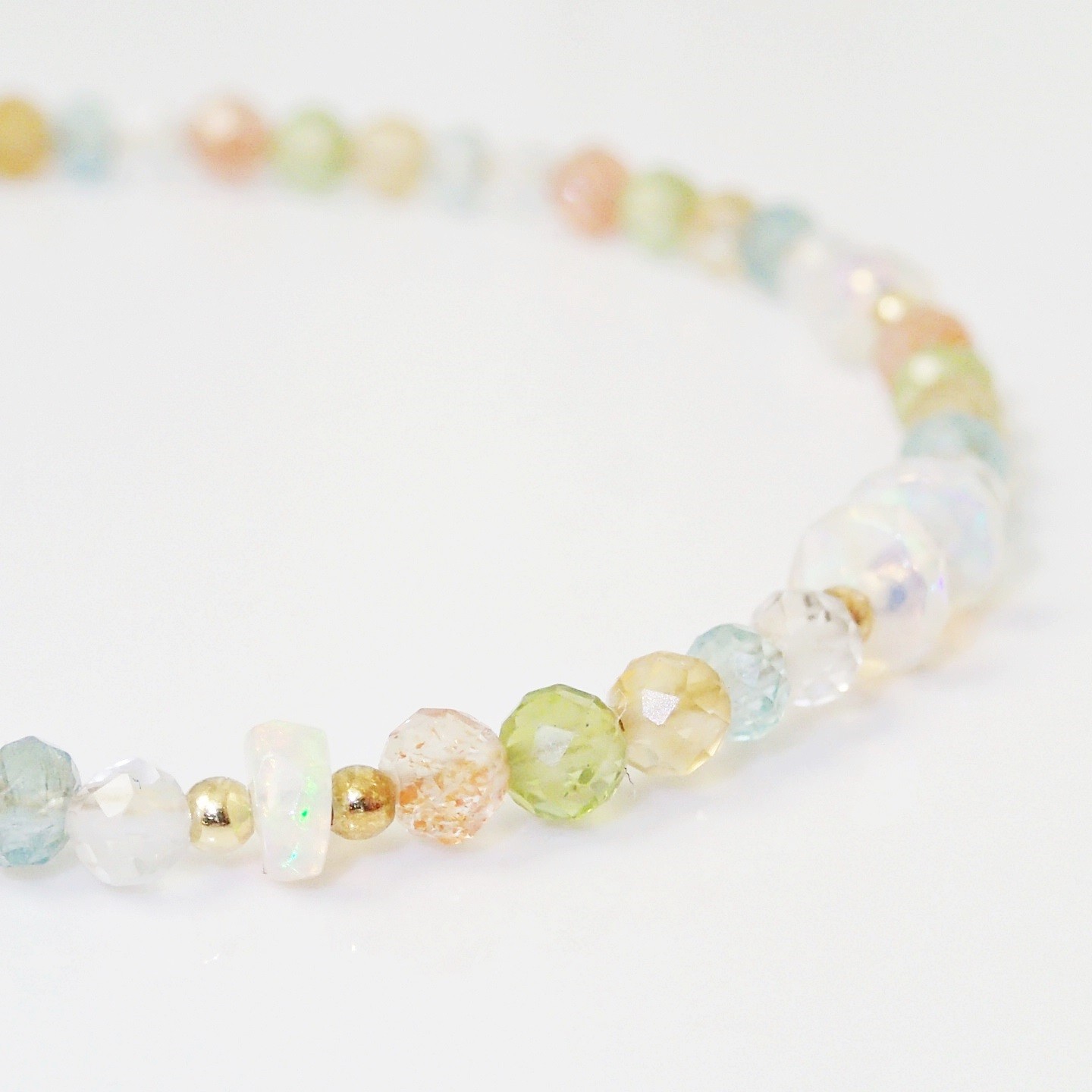 Steingröße: Opal geschliffene Rondelle ~5x3mm, Apatit 3x2mm facettierte Rondelle, andere ~3mm facettierte Kugel