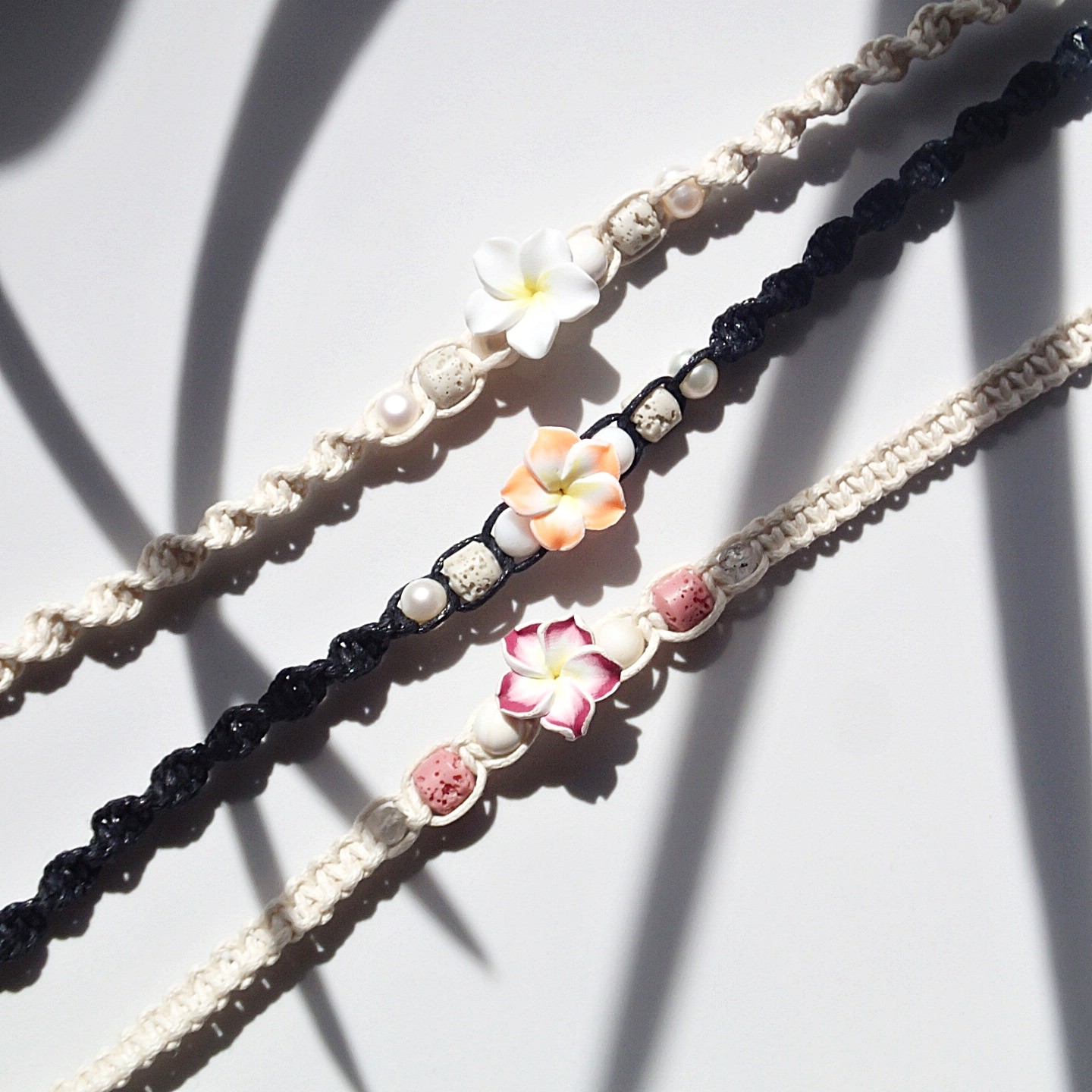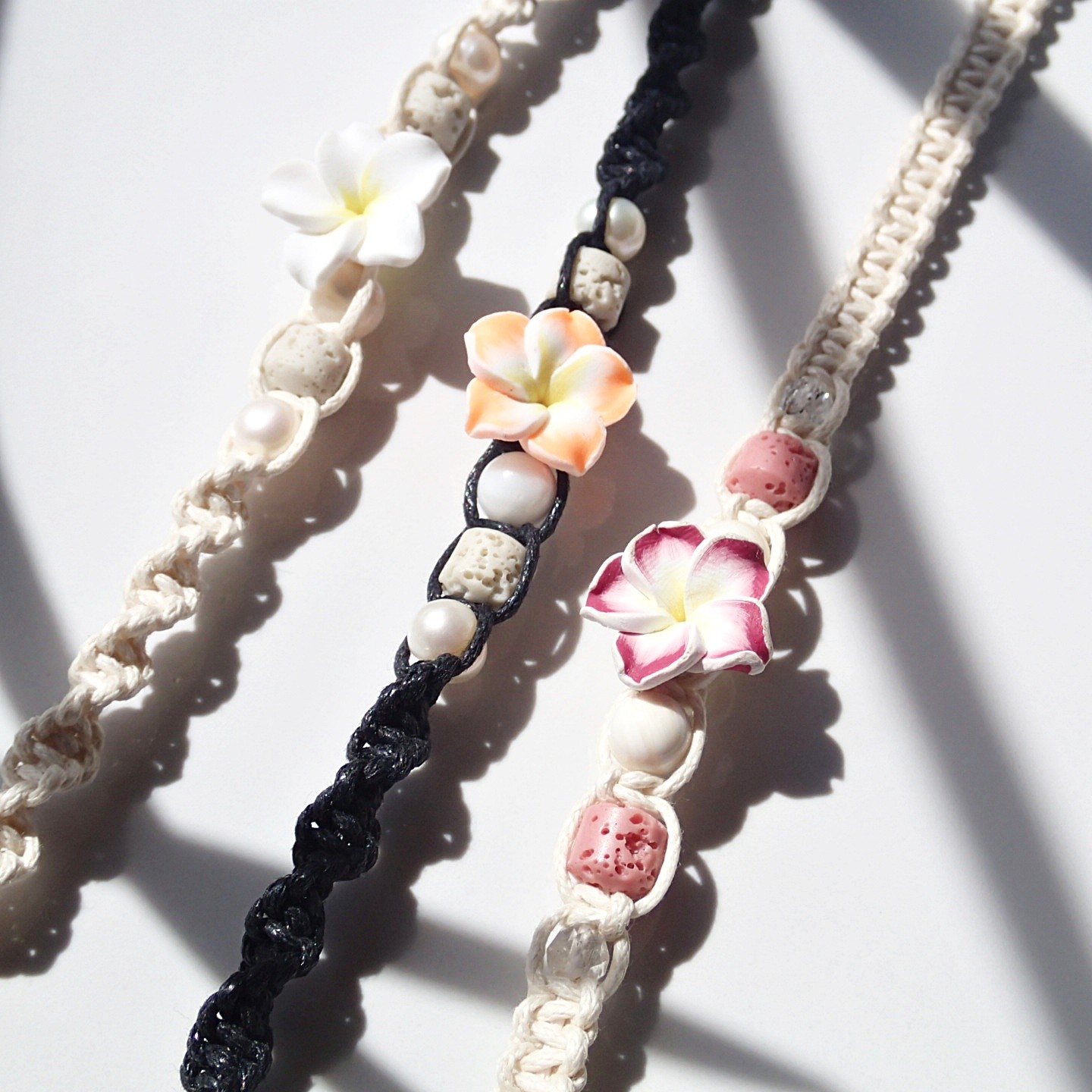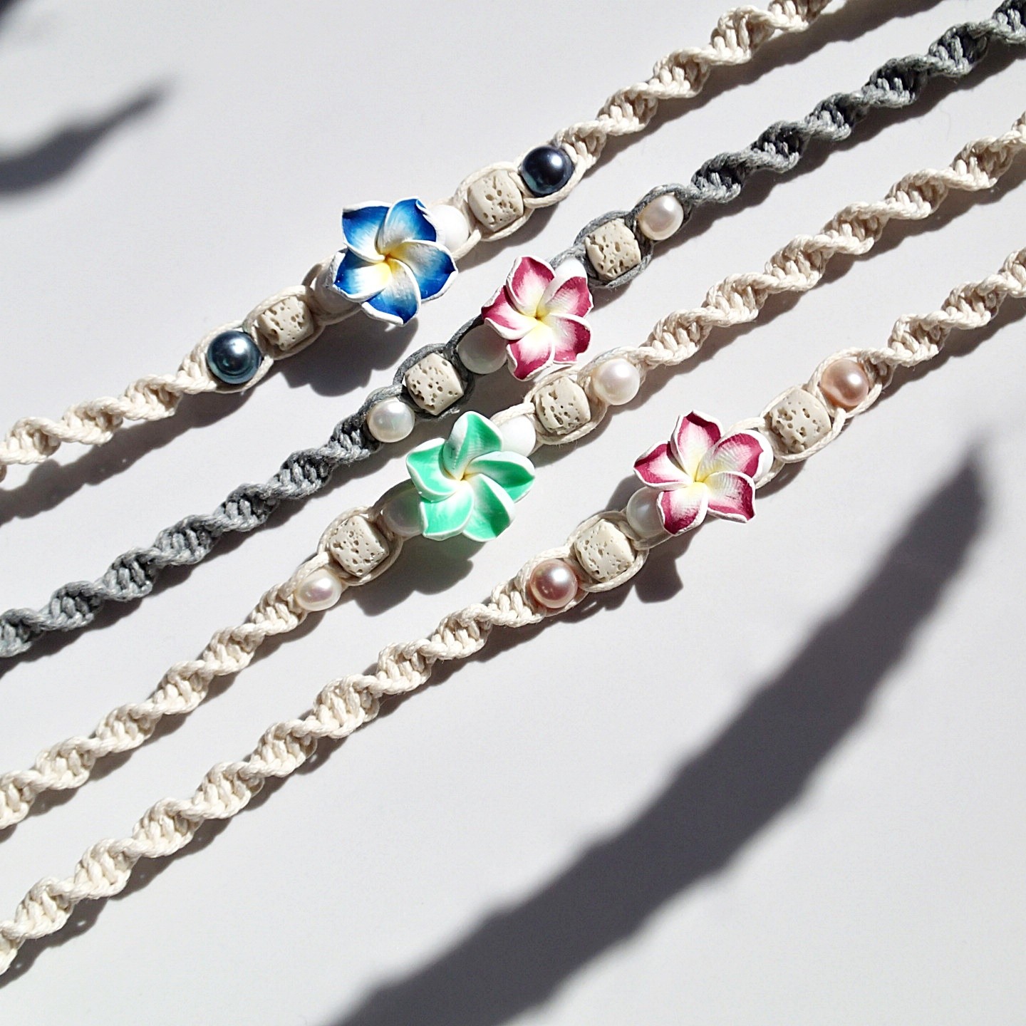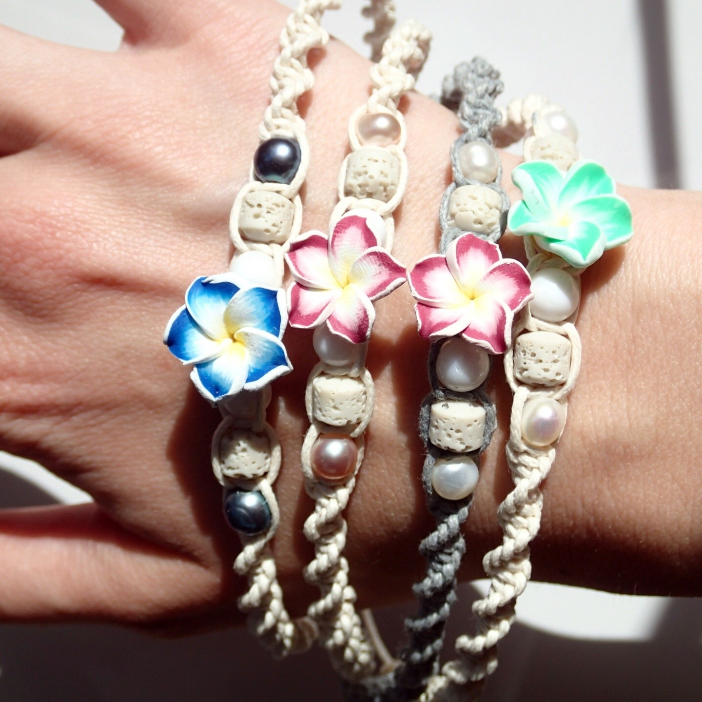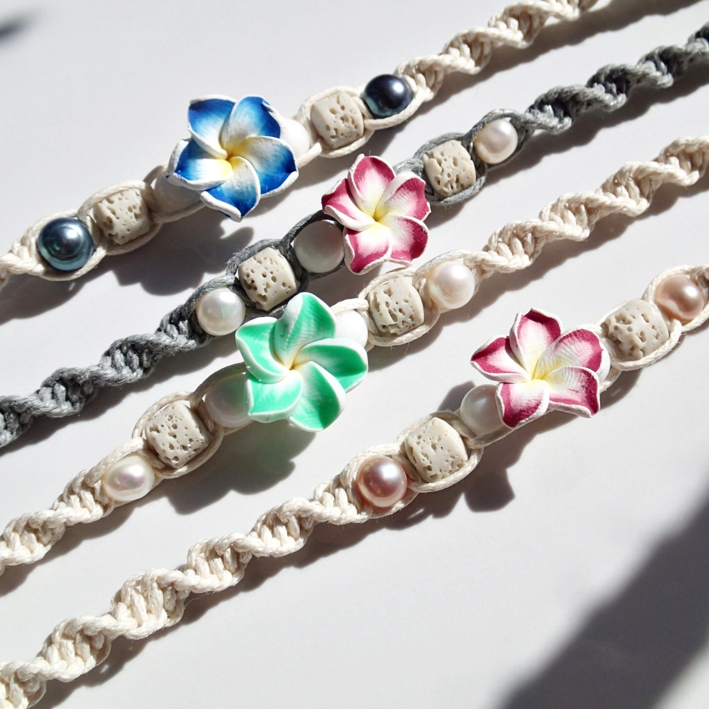 Cream – white Flower, Cream – pink Flower, Black- orange Flower, Cream – blue Flower, black-blue pearl, Cream – pink Flower, pink pearl, Gray – pink Flower, Cream – neon green Flower