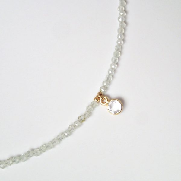 Chokerhalskette aus Prehnit mit Zirkonia-Anhänger