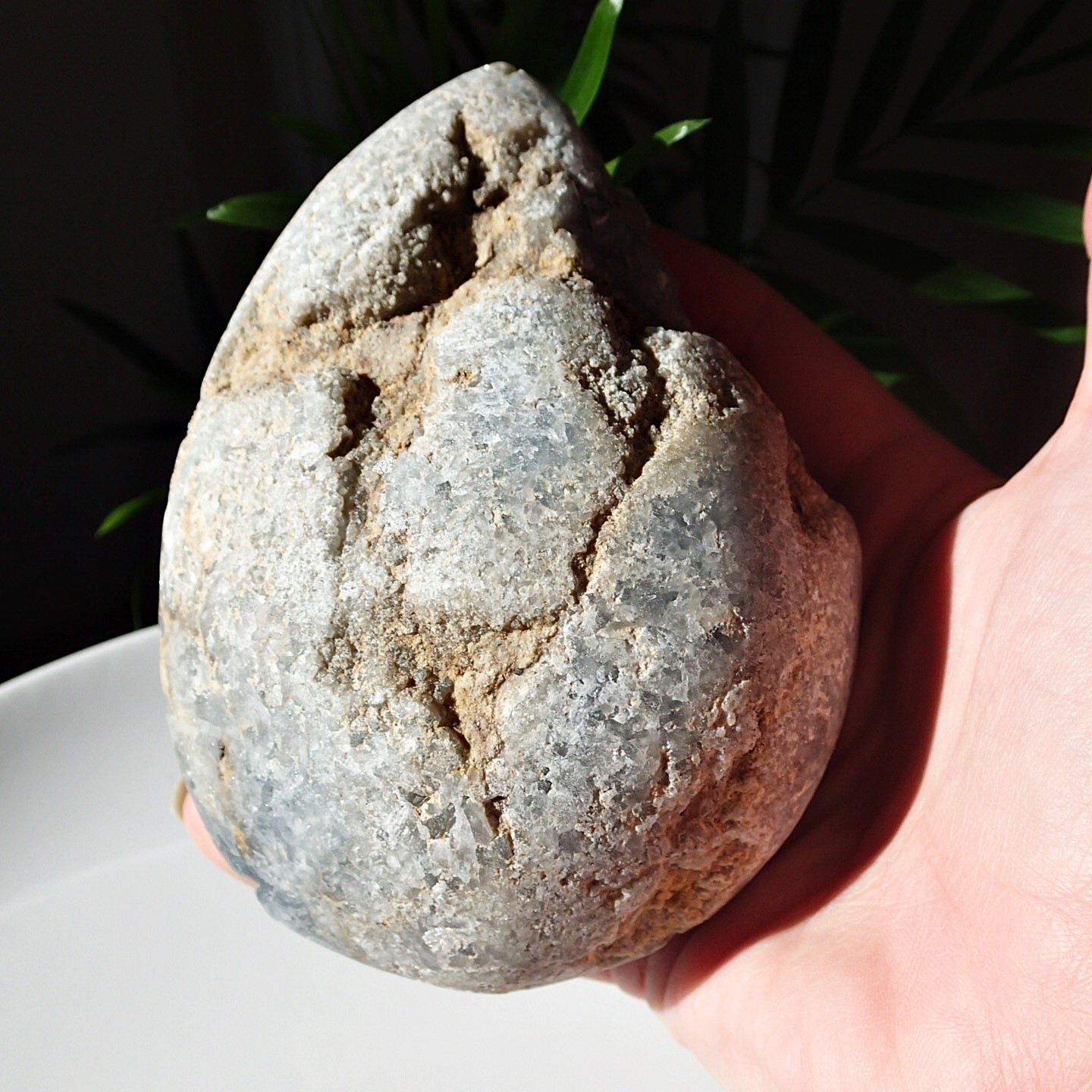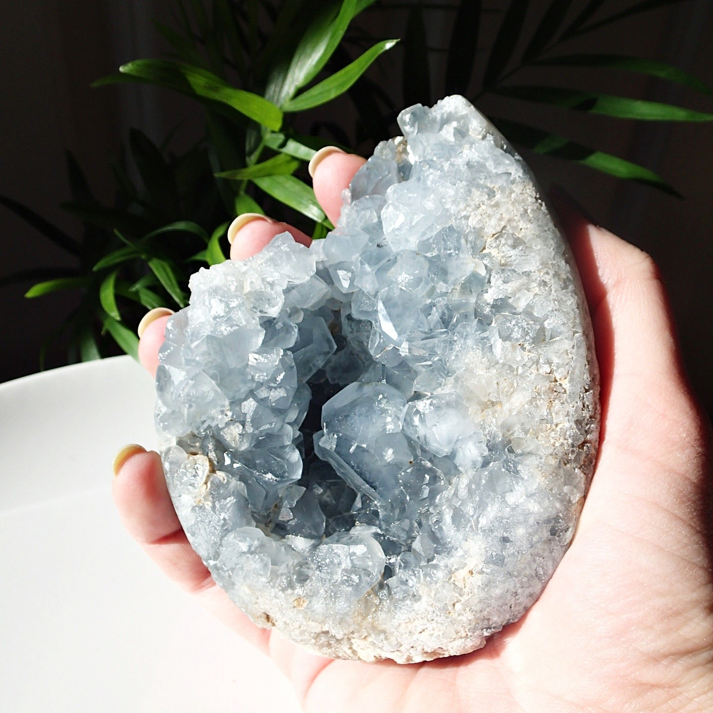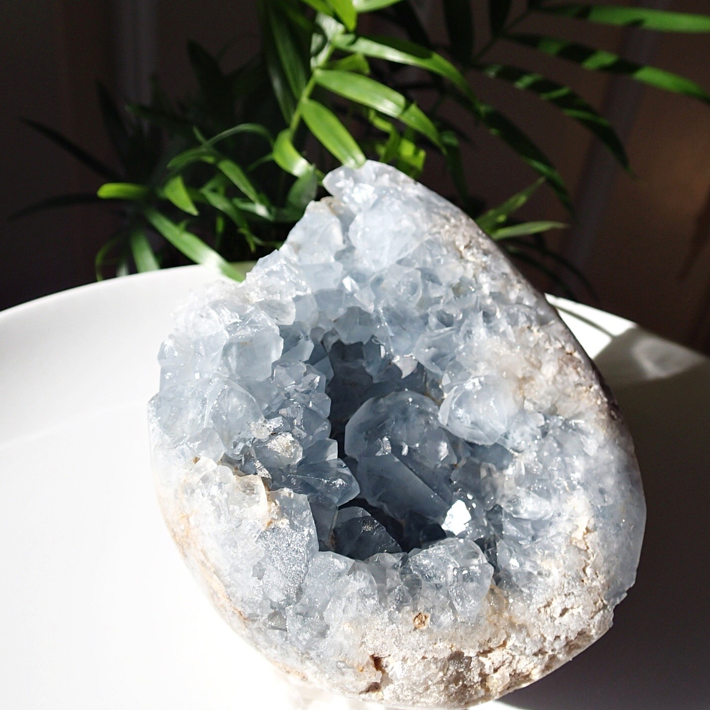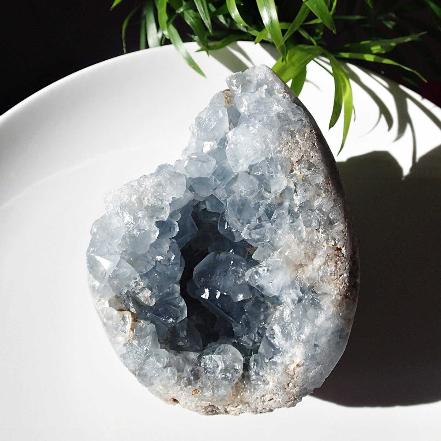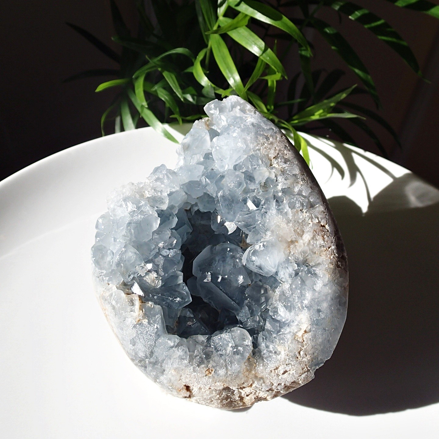 Eine Geode mit sehr schön geformten, stark schimmernden Kristallen aus hellblauem Coelestin.