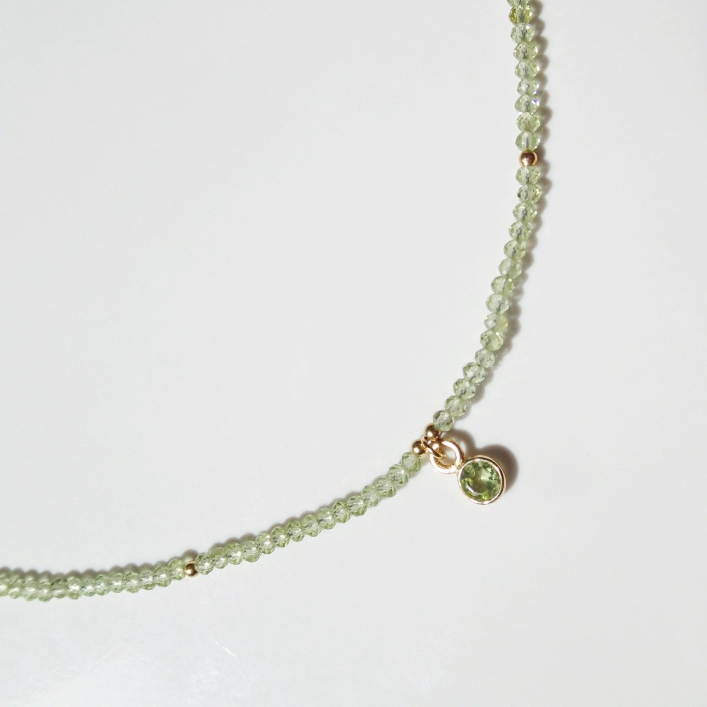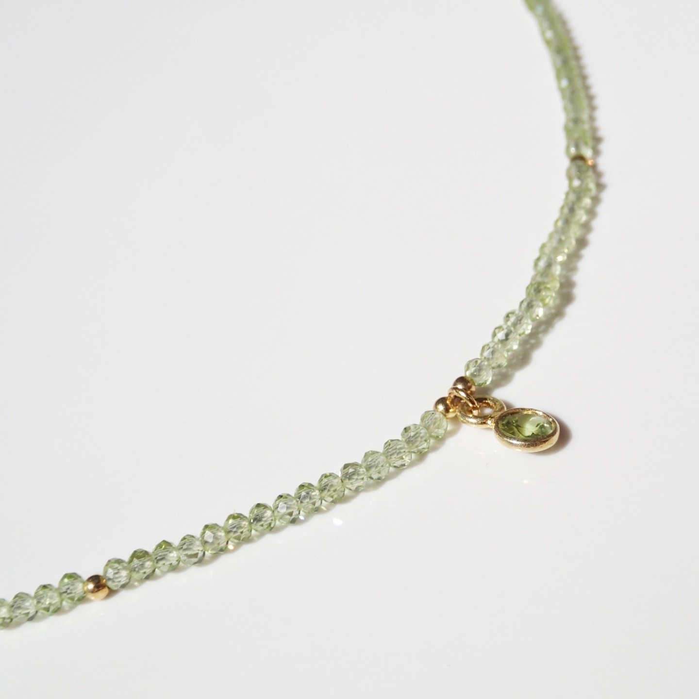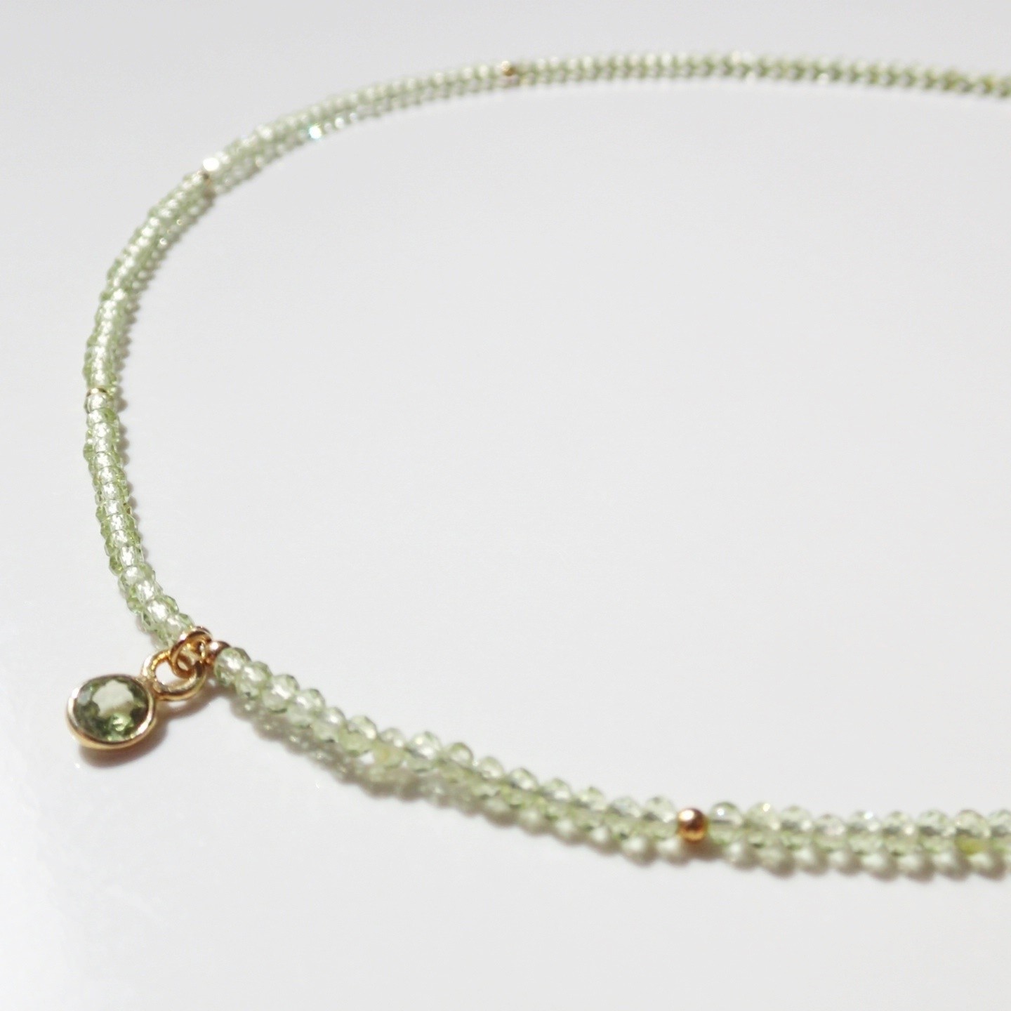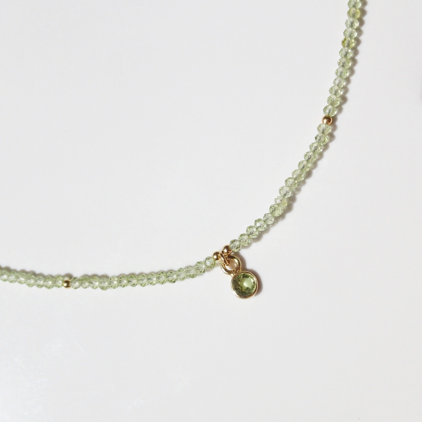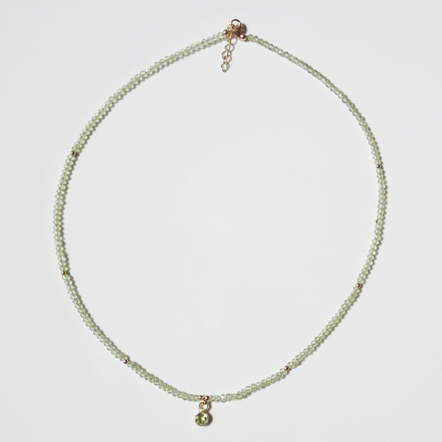 Handgefertigte Halskette aus natürlichem, edlem Olivin (Peridot). Verziert mit einem Peridot-Anhänger.