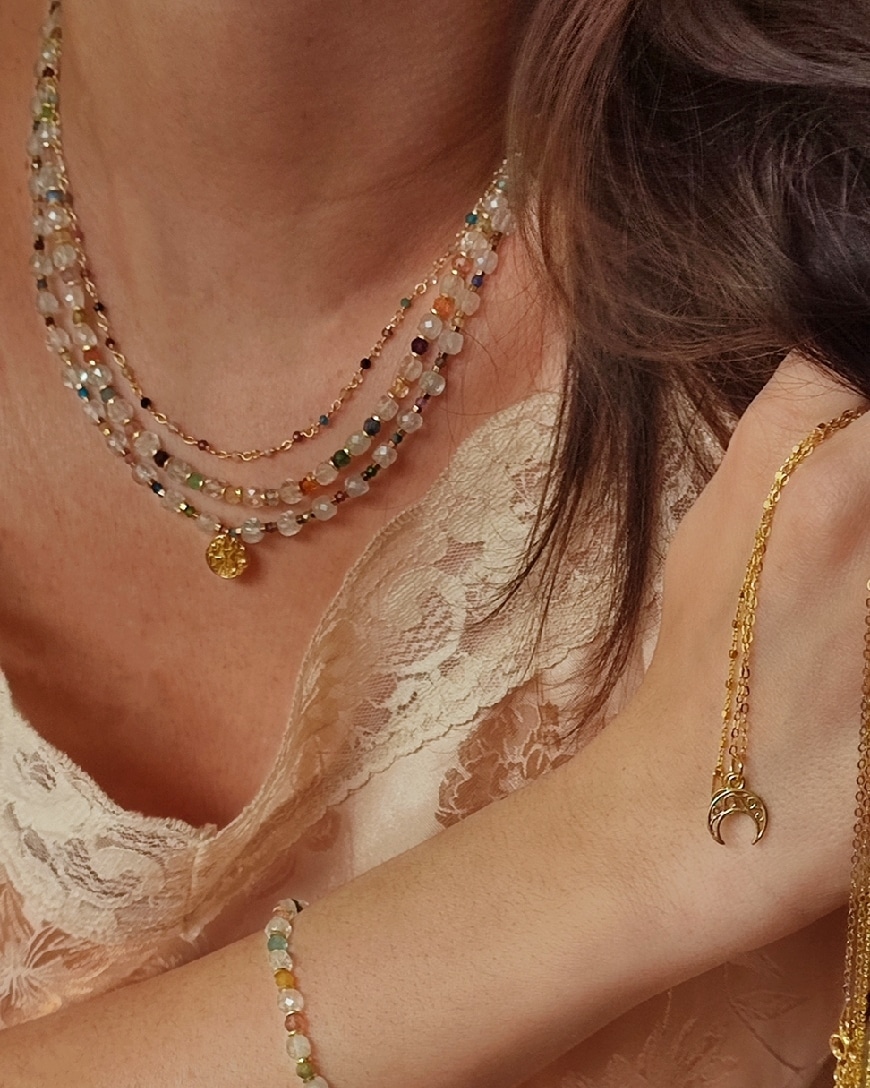 Handgefertigte Halskette aus natürlichen Steinen und vergoldetem Silber (925).