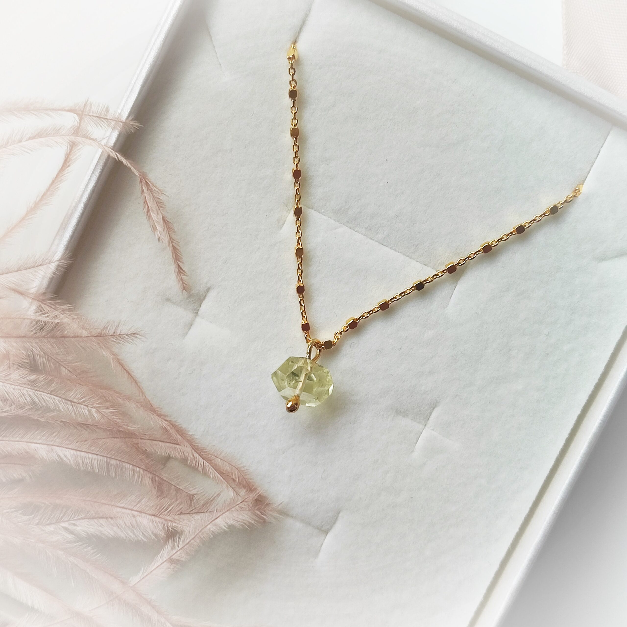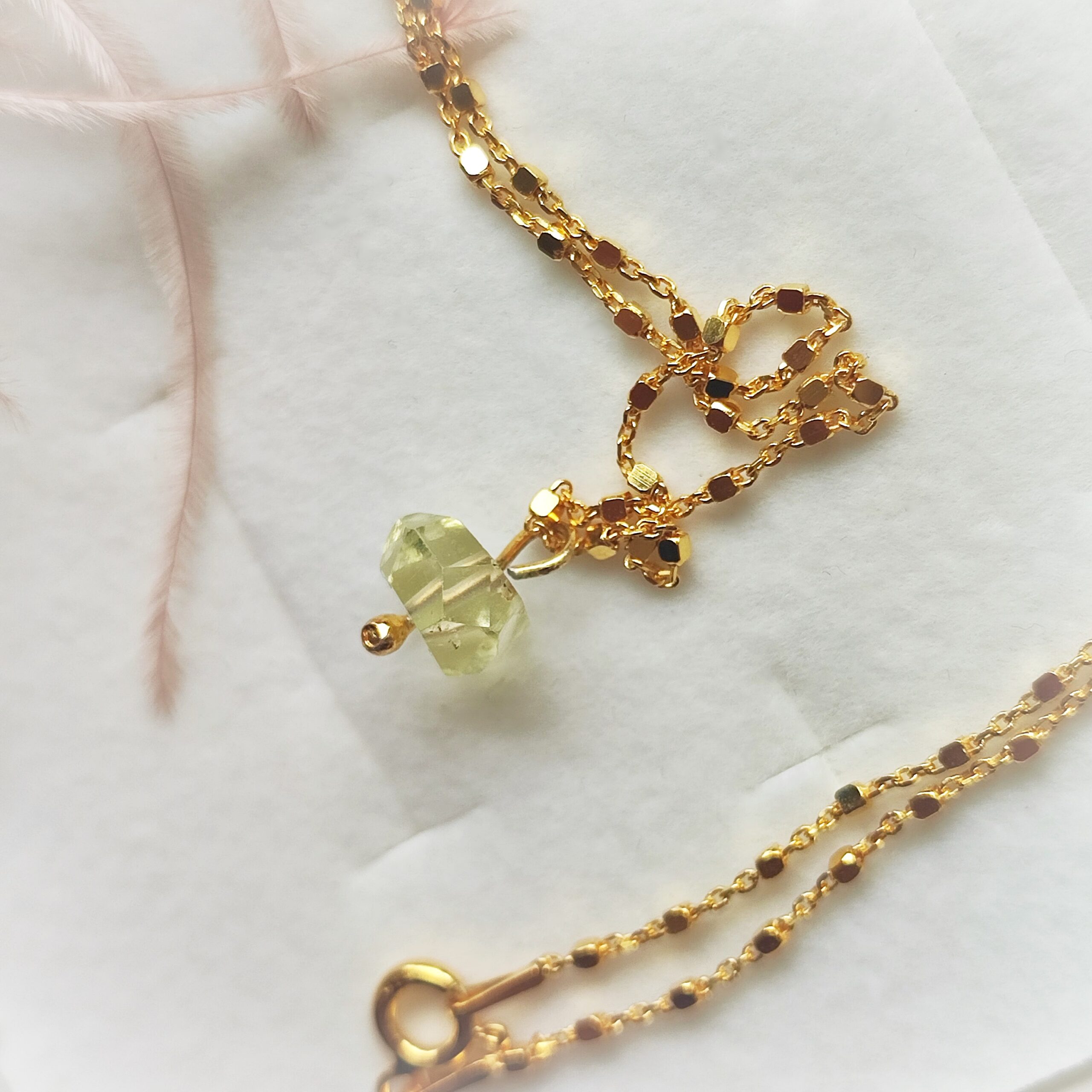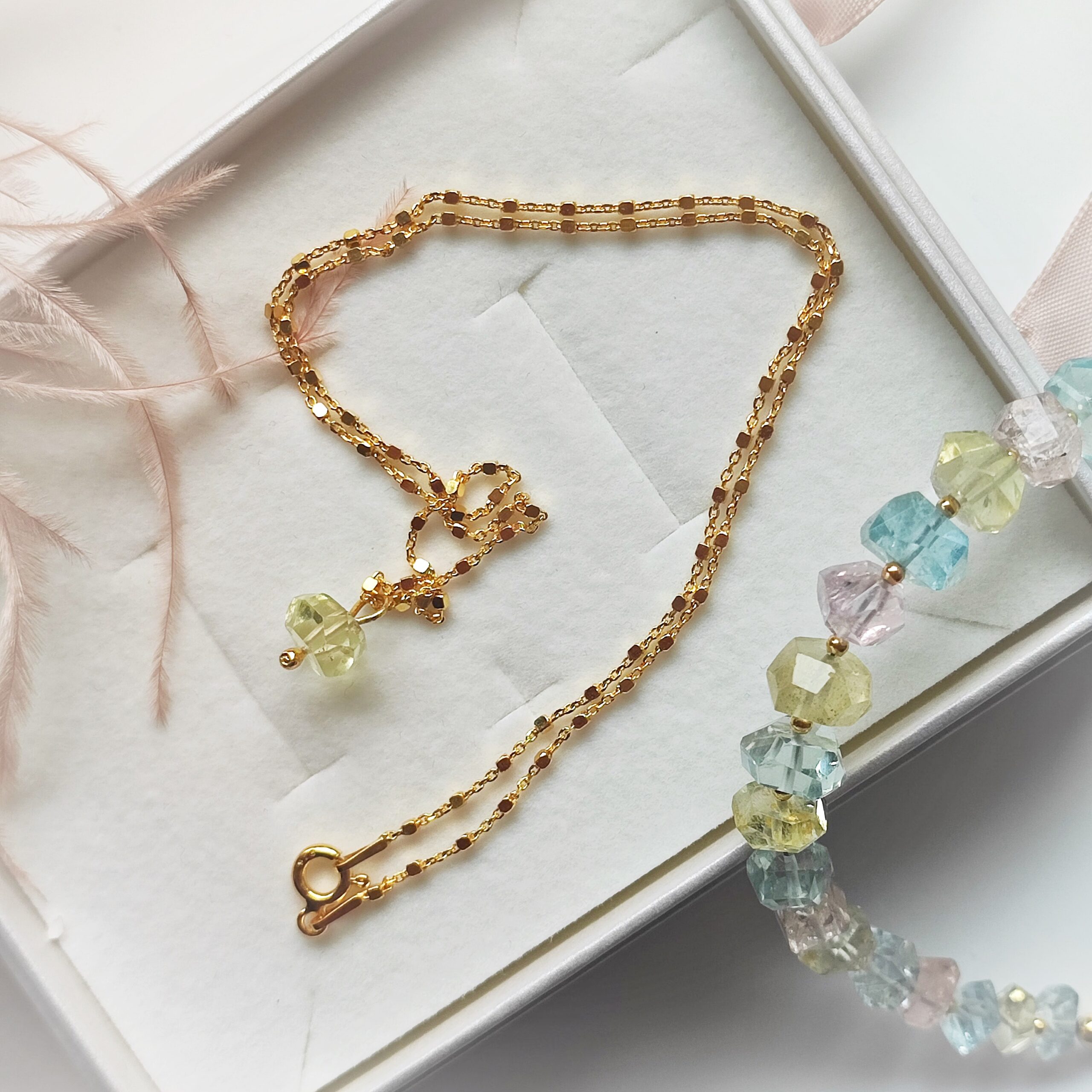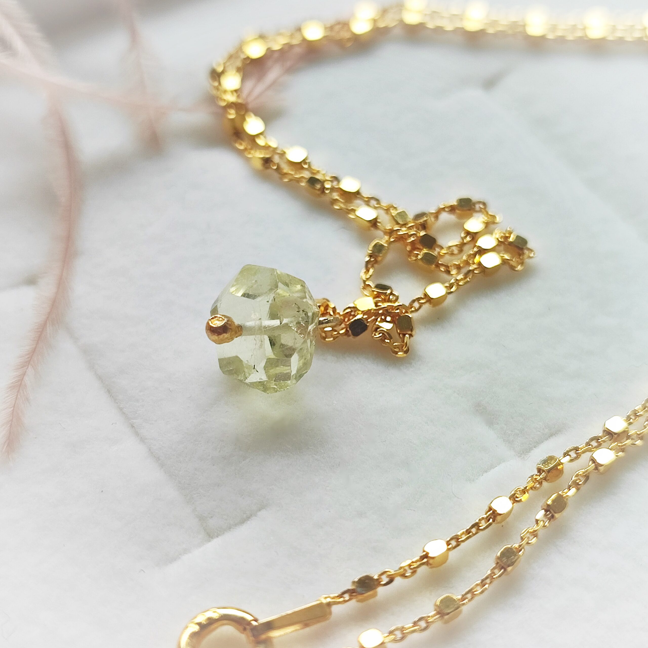 Halskette mit atemberaubendem, edlem Heliodor an einer vergoldeten Silberkette (925) mit Würfeln.