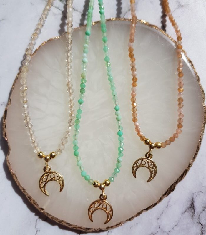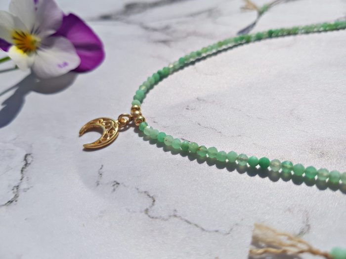 Zarte Halskette mit natürlichem Prasiolith und Citrin – eine schlichte Form, die wunderbar mit Licht und Farbe spielt.
