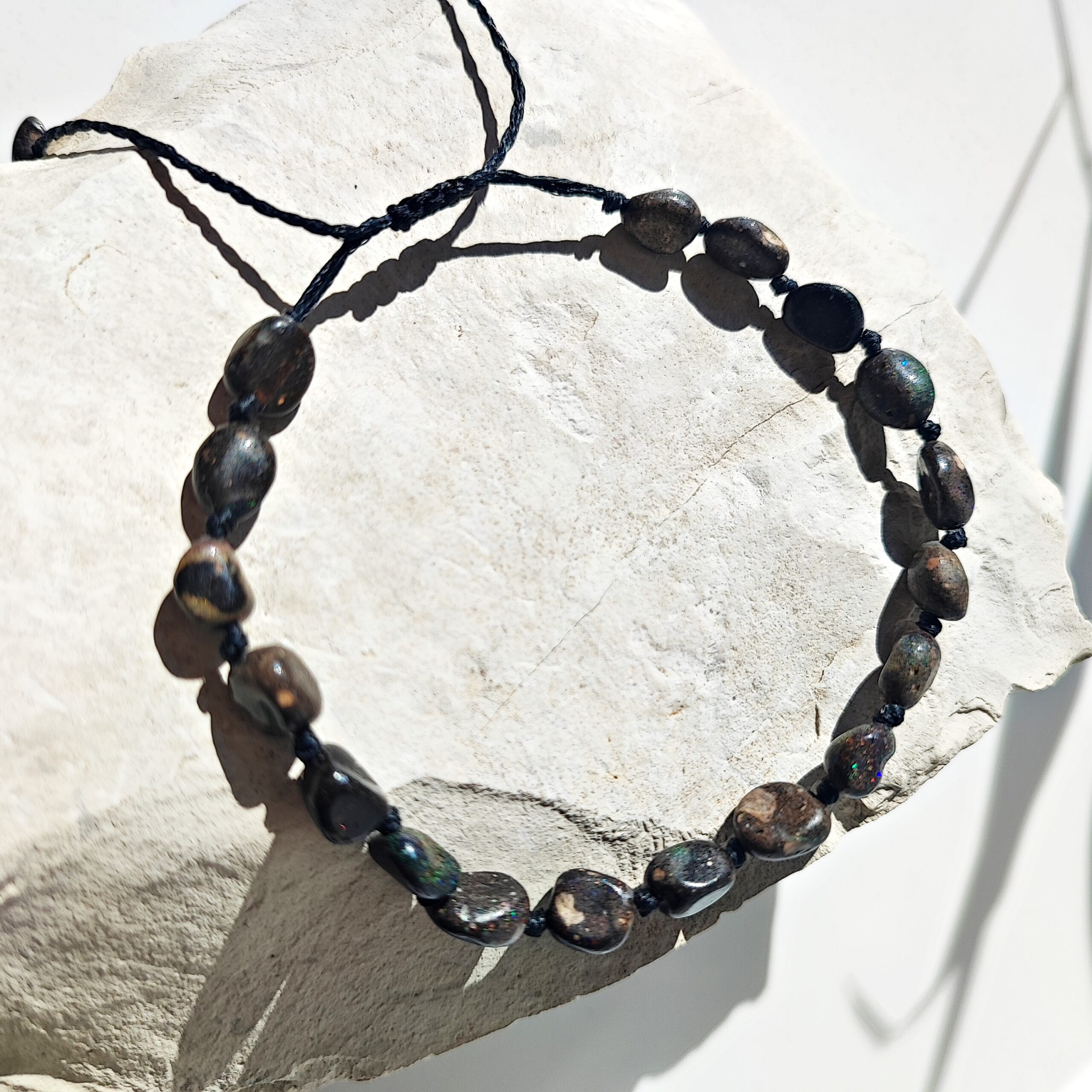 Jeder Opal entsteht über Millionen von Jahren in Sedimentgestein. Seine charakteristischen Reflexe entstehen durch die mikroskopische Struktur der Kieselsäure, die das Licht bricht. Deshalb ist jeder Stein einzigartig – kein Exemplar gleicht dem anderen.