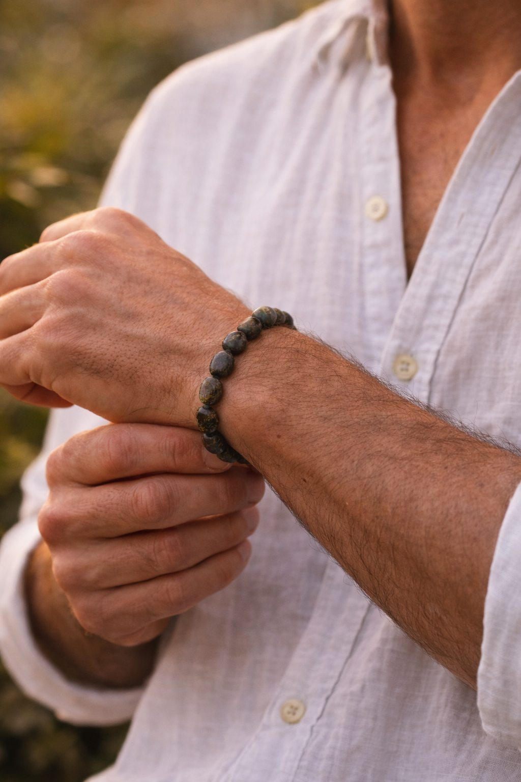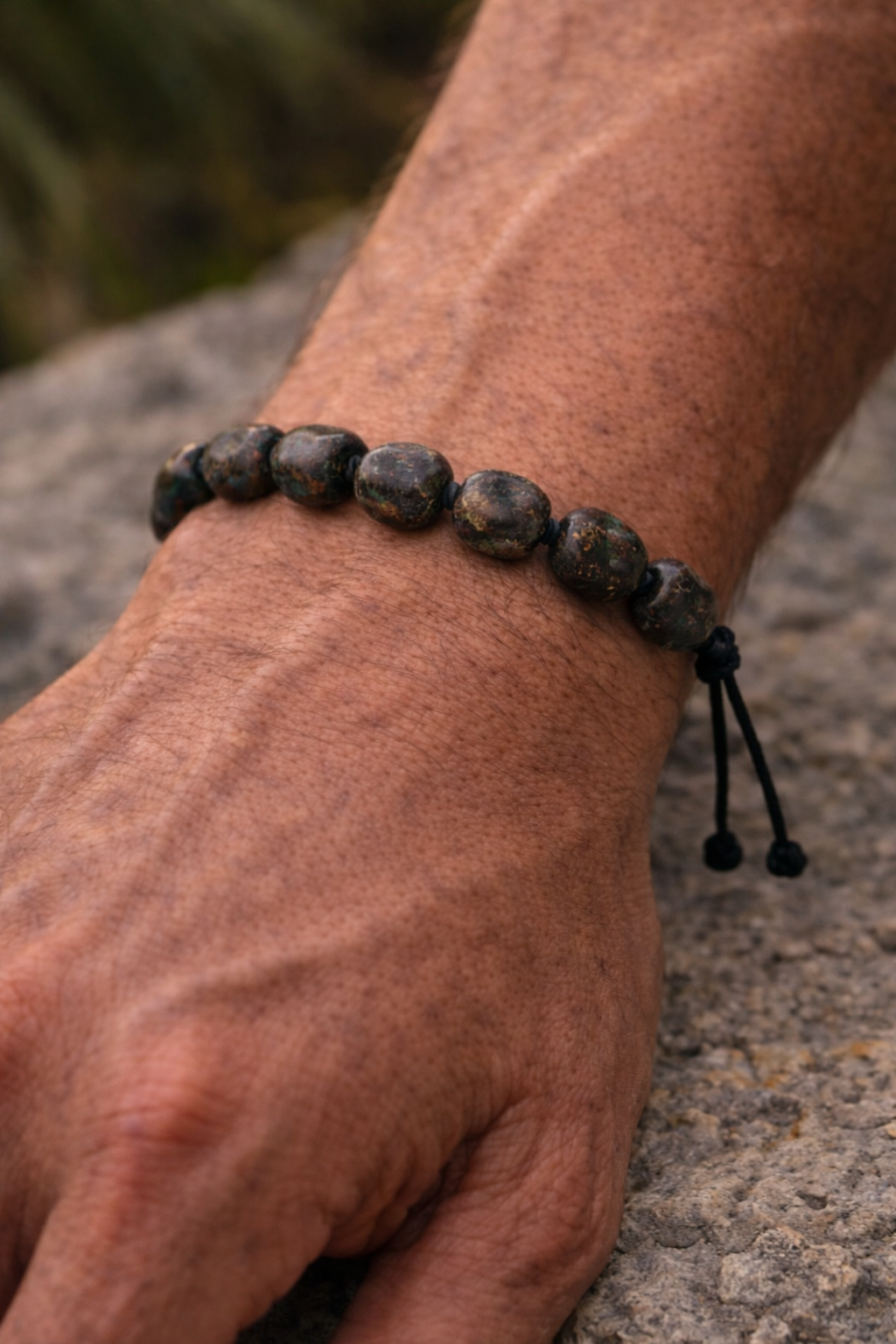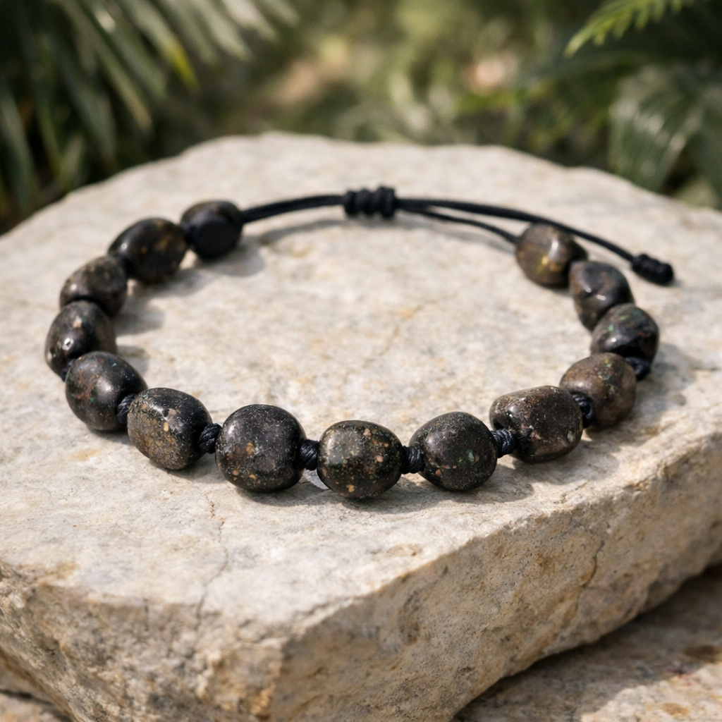 Das Armband hat einen rohen, natürlichen Stil, inspiriert von den Farben der Erde und Mineralien. Die zurückhaltende Farbgebung macht es passend für den Alltag ebenso wie für minimalistischen Herrenschmuck.