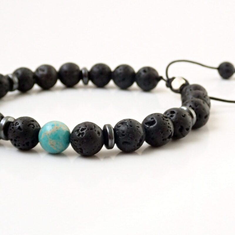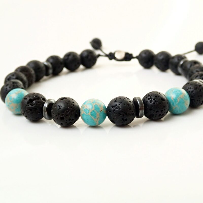 Kaiserlicher Jasper sorgt für innere Ruhe und Klarheit. Lavastein und Hämatit haben Erdungseigenschaften im Einklang mit dem Basischakra (Wurzelchakra).