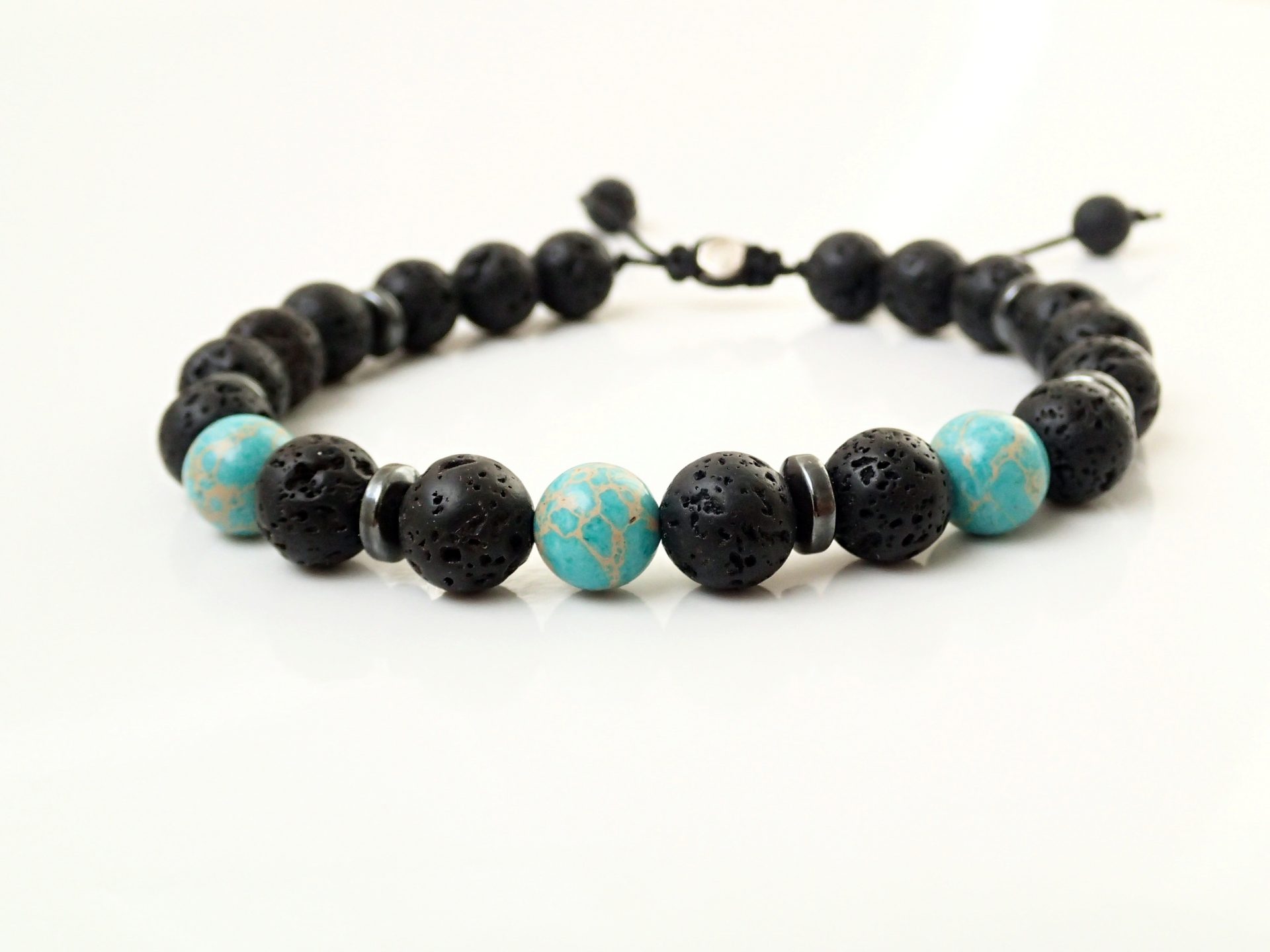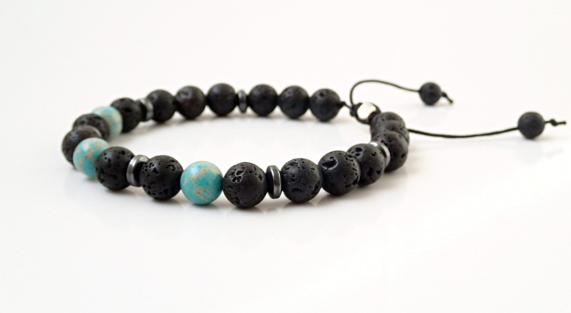 Kaiserlicher Jasper sorgt für innere Ruhe und Klarheit. Lavastein und Hämatit haben Erdungseigenschaften im Einklang mit dem Basischakra (Wurzelchakra).