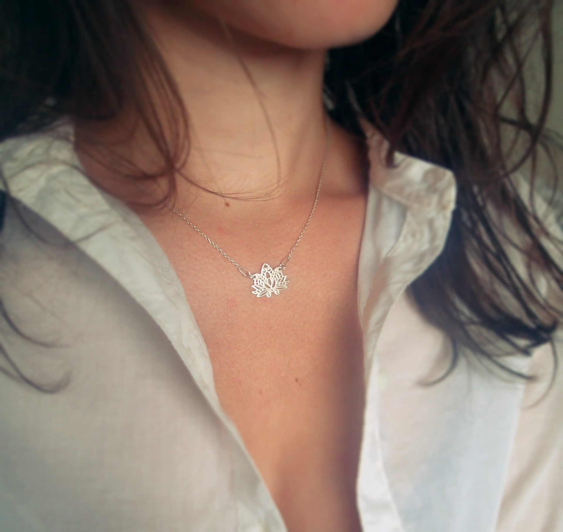 Silberkette mit einem schönen, Lotus aus Silber als ein Halsreif.