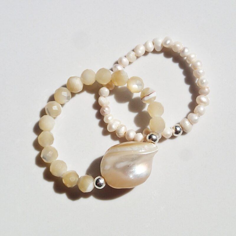 Set aus zwei elastischen Ringen Perlen und weiße Muschel