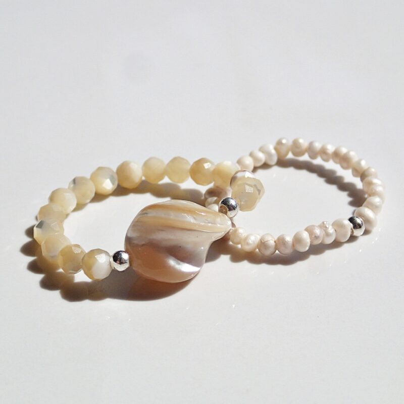 Set aus zwei elastischen Ringen Perlen und beige Muschel