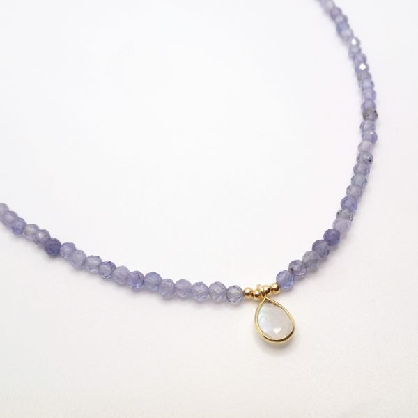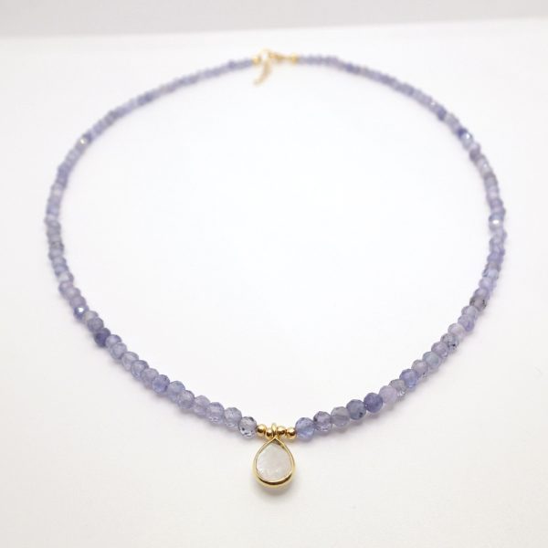 Chokerhalskette aus Tansanit mit Mondstein-Anhänger