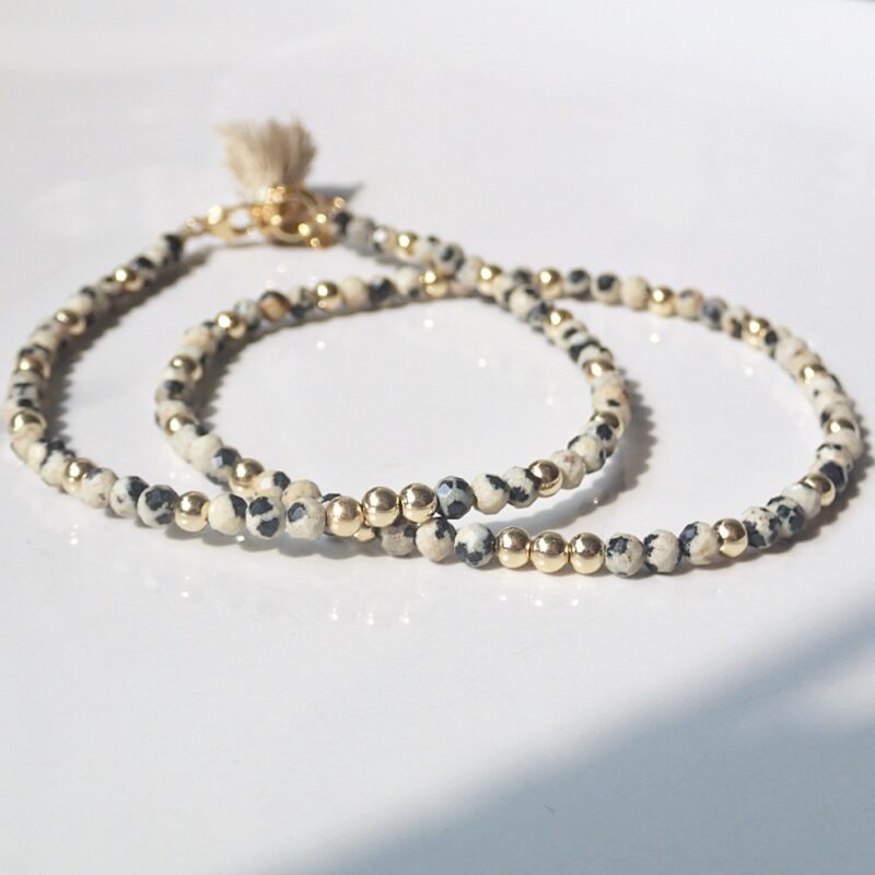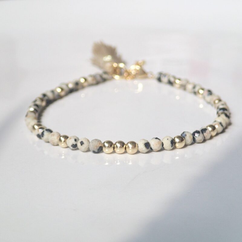 Armband ‘Yin and Yang harmony’ aus Dalmatiner Jaspis mit einer Quaste