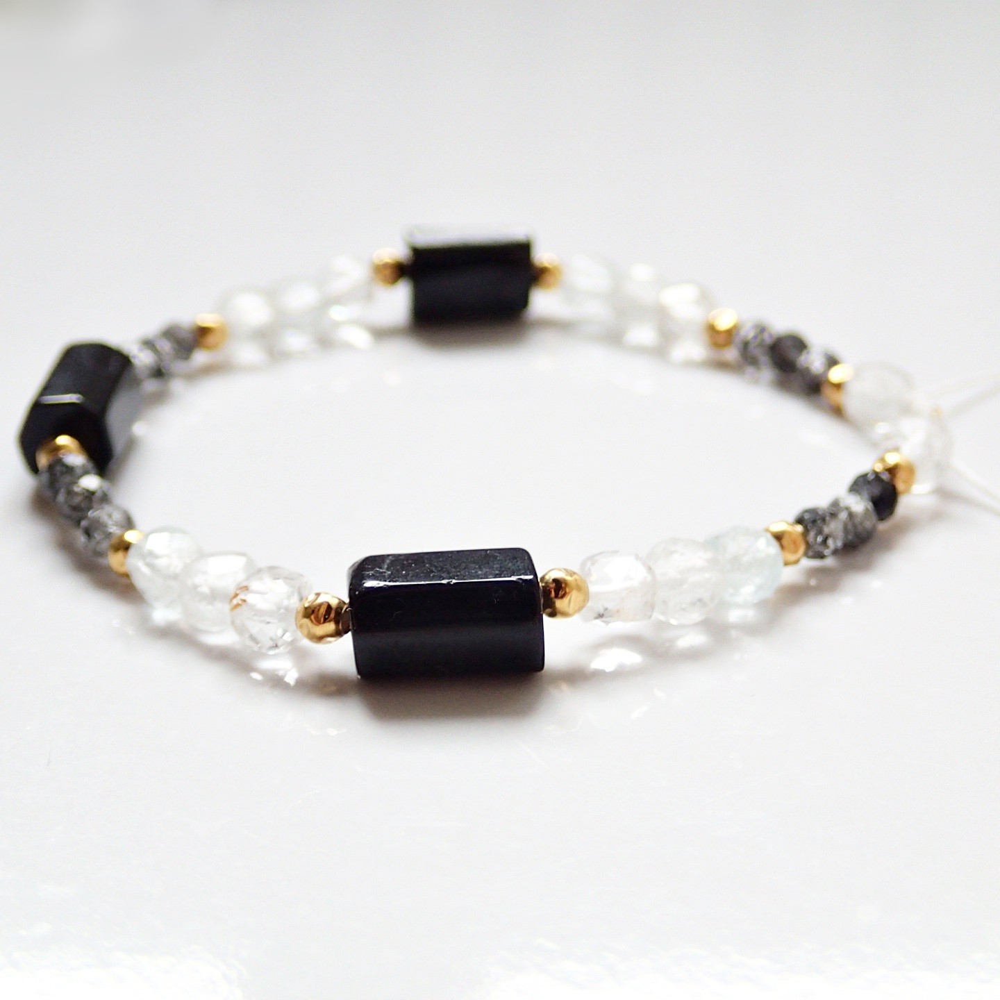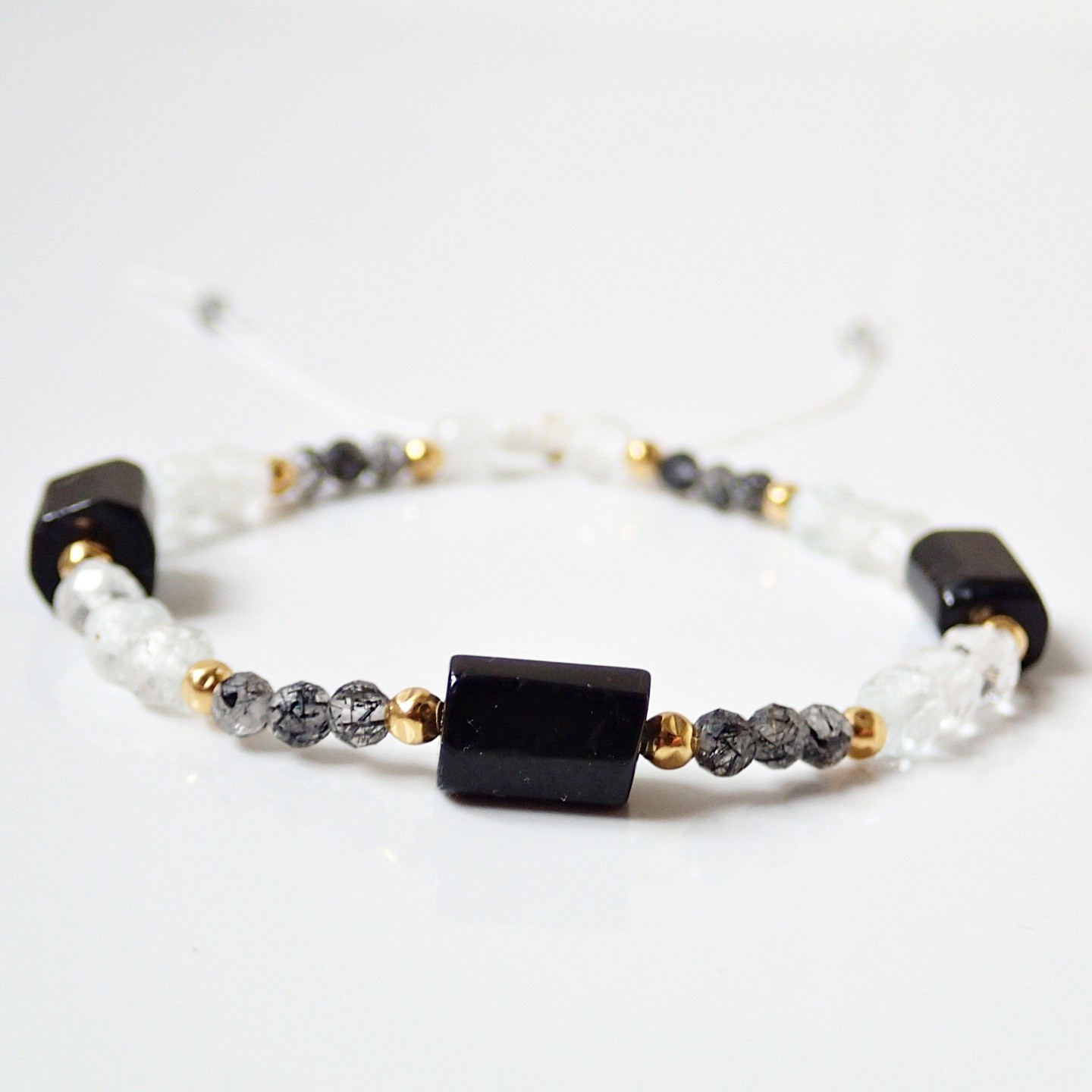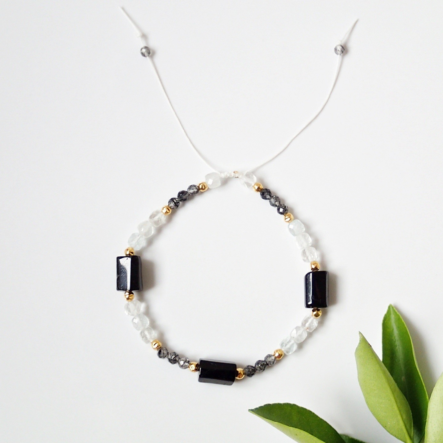 Bransoletka ‘3 Bryłki’ – Turmalin, Kwarc turmalinowy i Topaz
