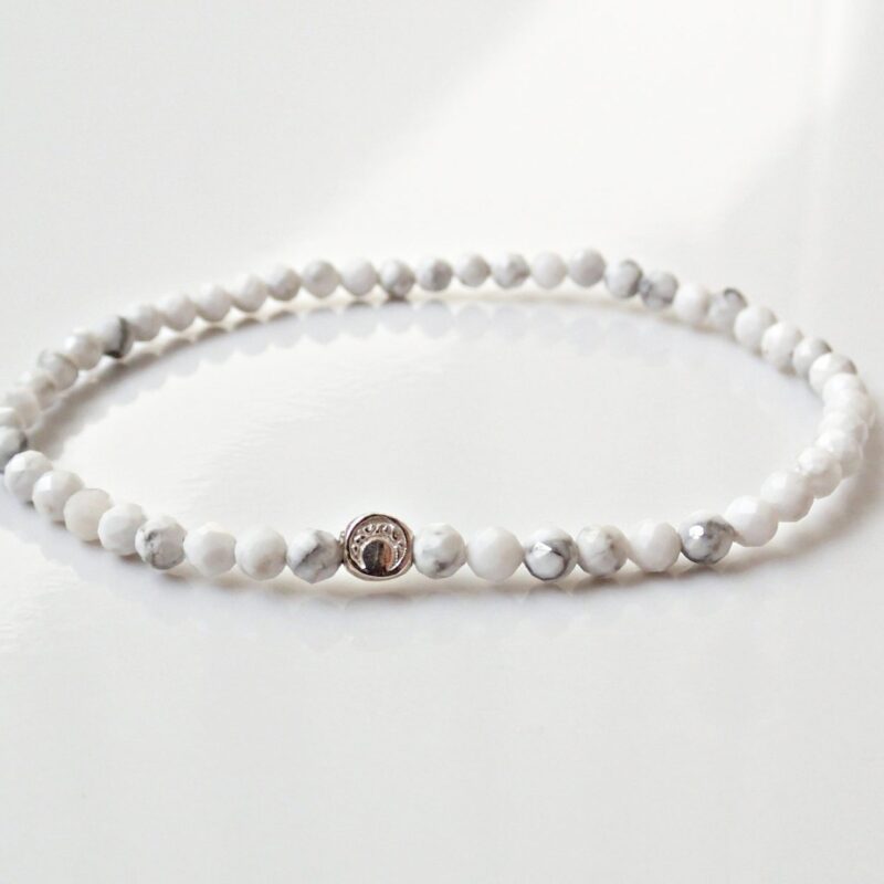 Ręcznie wykonana bransoletka, zaplatana bawełnianym sznurkiem. Ozdobiona polimerowym kwiatkiem oraz perełkami, muszlami i białą skałą wulkaniczną. Zakończenia sznureczków ozdobione kulkami kokosa. Rozmiar dopasowuje się do nogi dzięki regulacji wielkości.