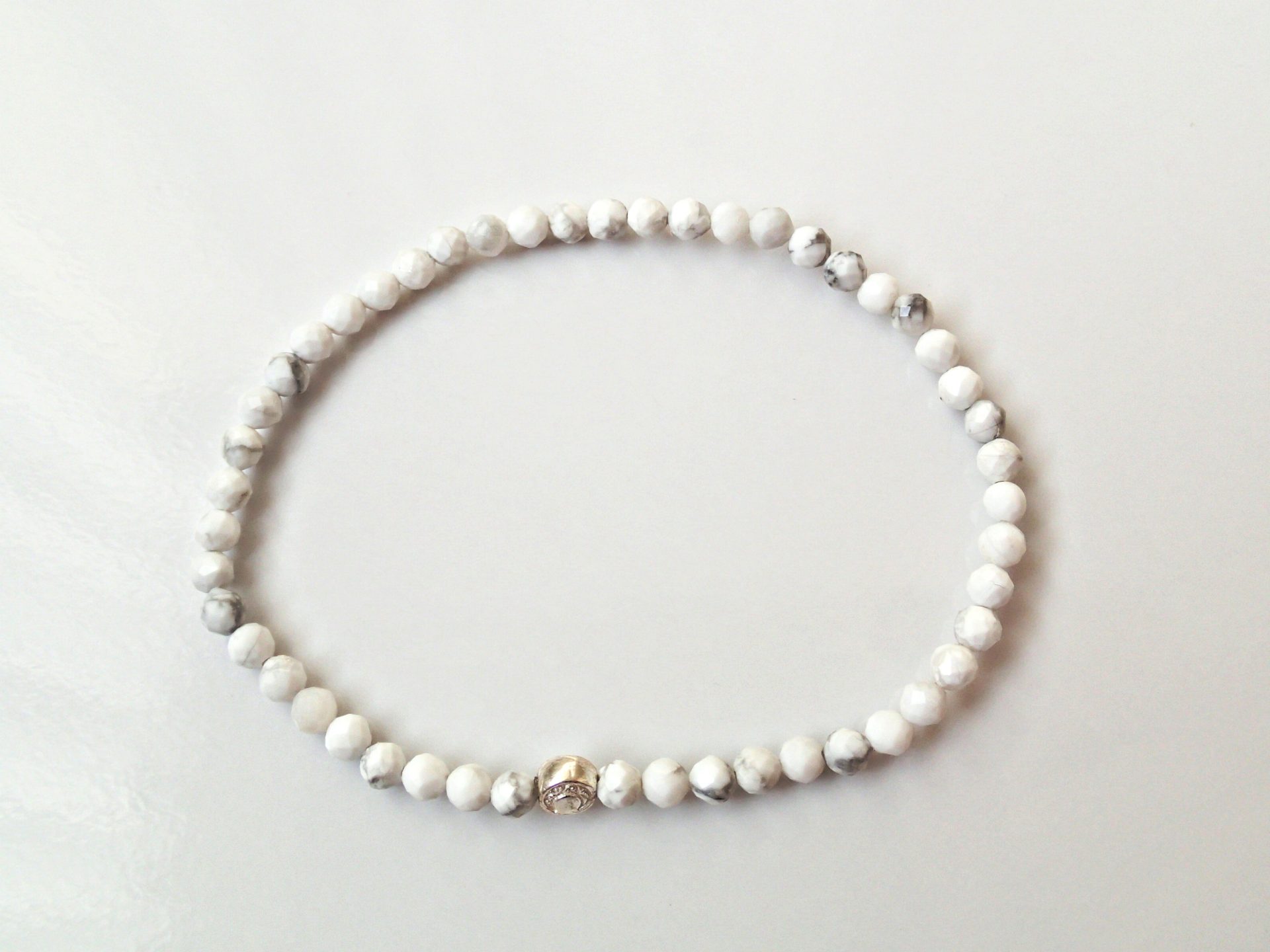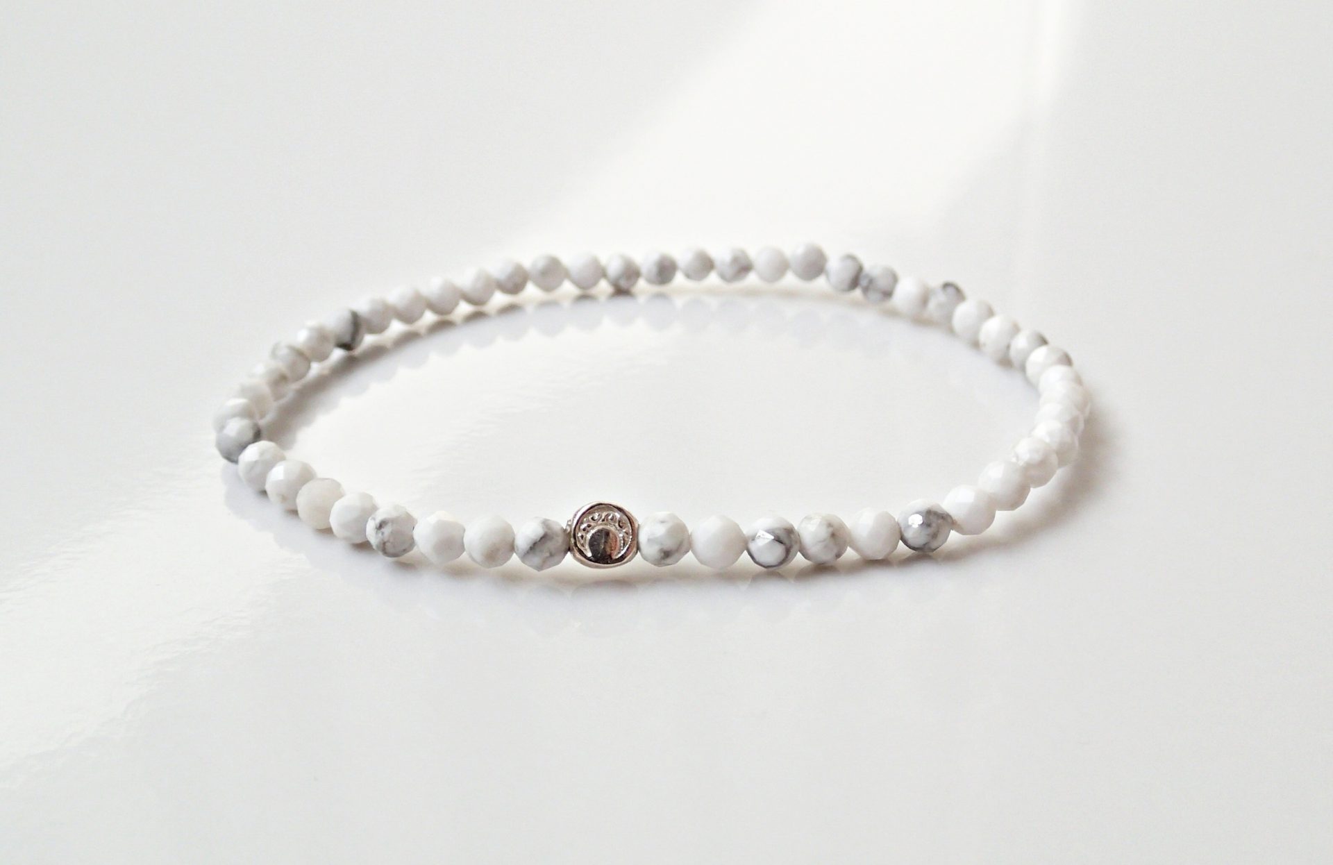 Ręcznie wykonana bransoletka z naturalnego, białego Howlitu oraz srebrnego (próba 925), firmowego koralika.