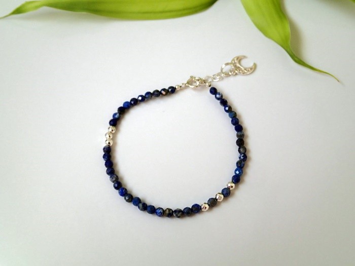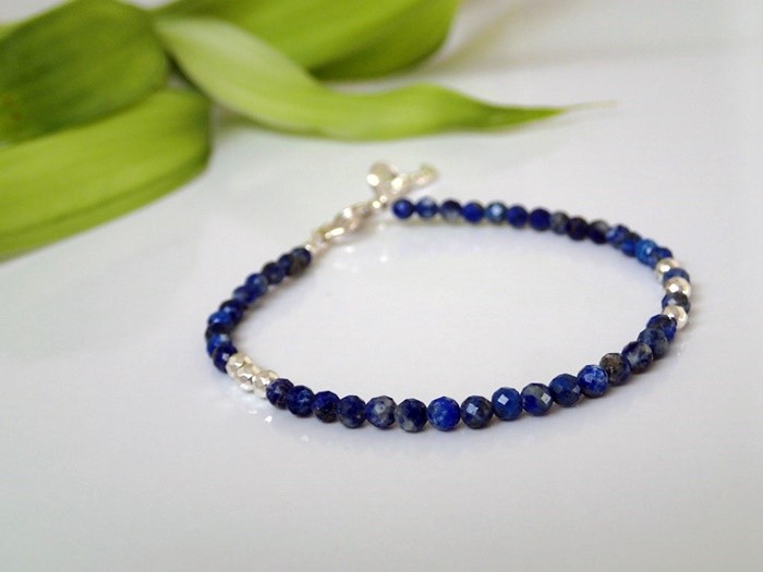 Ręcznie wykonana bransoletka z naturalnego Lapis Lazuli oraz Hematytu w kolorze srebrnym.