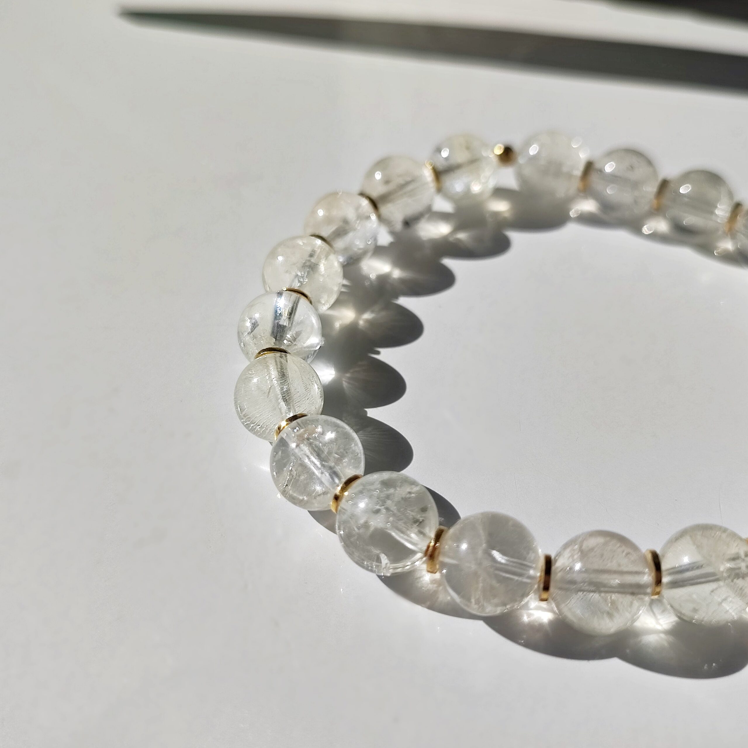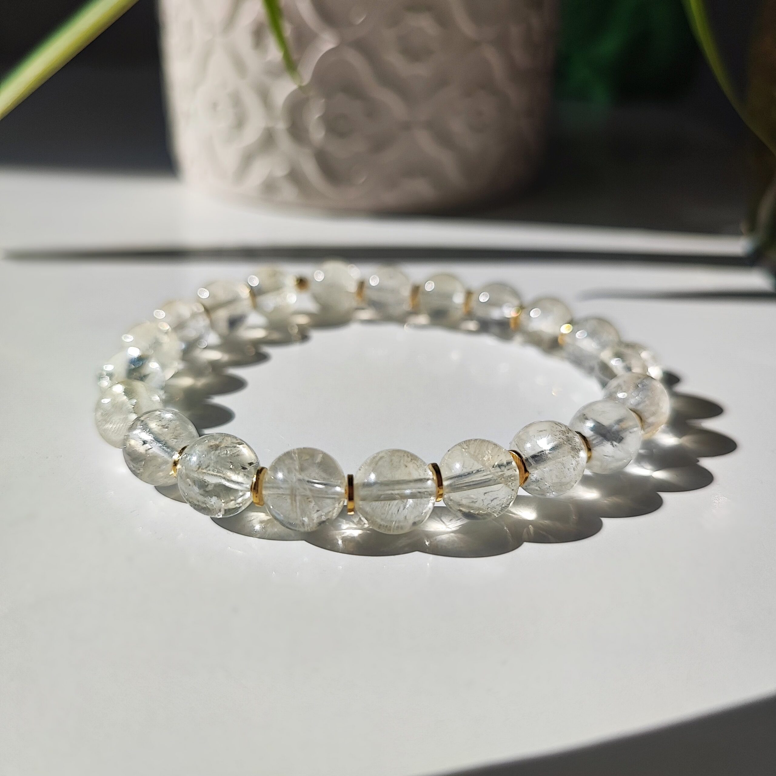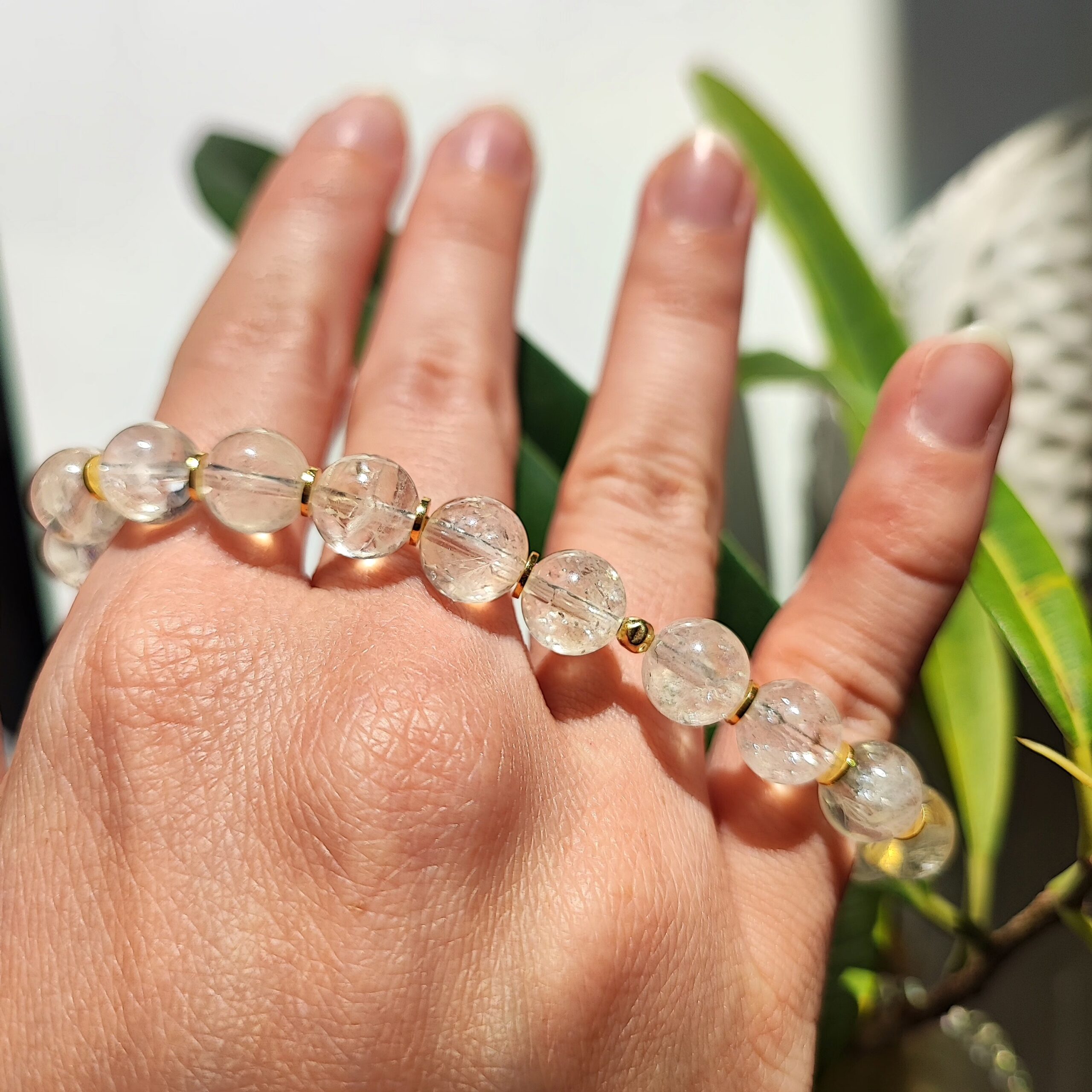 Ręcznie wykonana, przepiękna, elastyczna bransoletka z przejrzystego, bardzo jasno-złotego Cytrynu. Wszystkie elementy dekoracyjne wykonane są z srebra (925) pozłacanego 24-karatowym złotem. W kamieniach można obserwować fascynujące iskrzenie oraz tęcze zwane iryzacją.