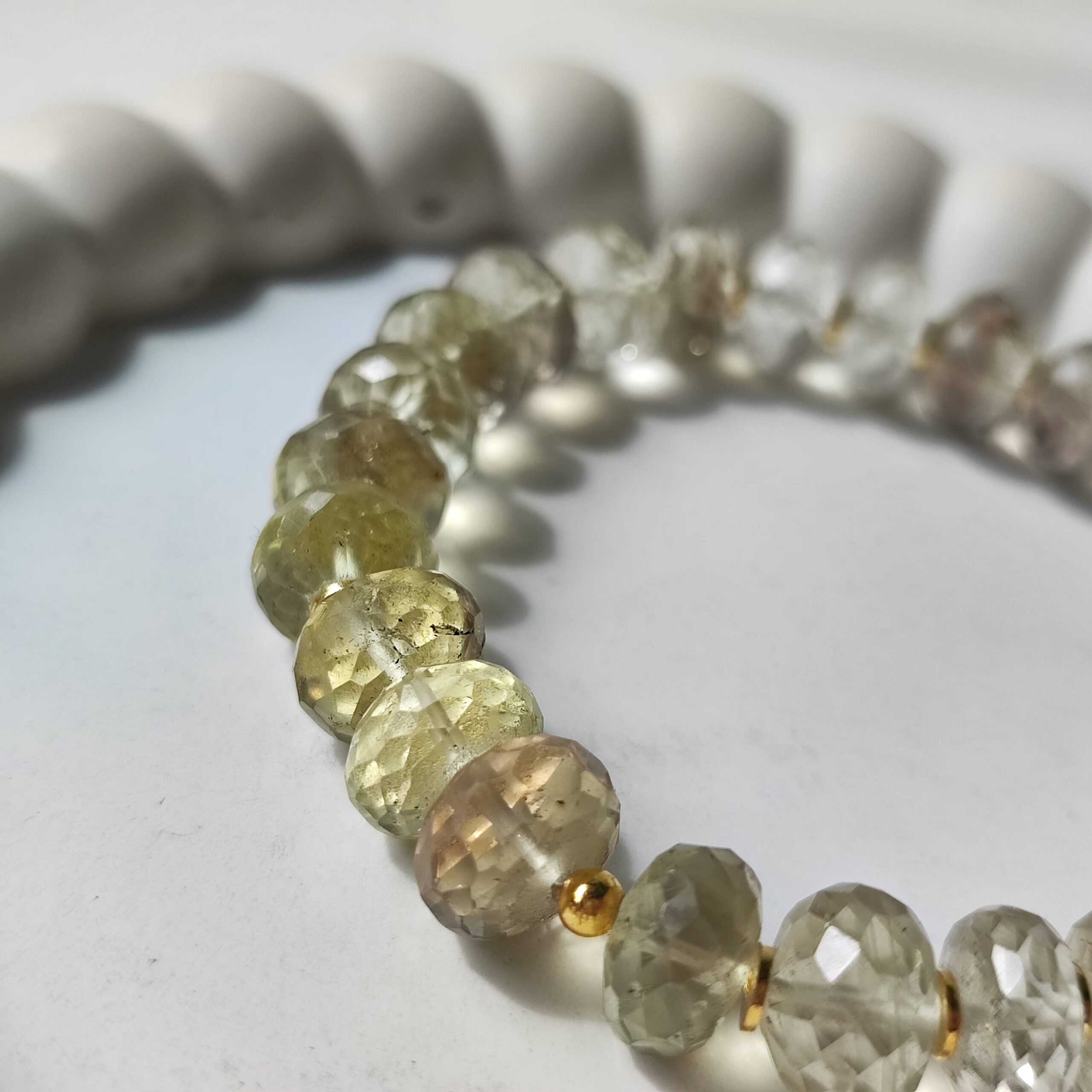 Ręcznie wykonana bransoletka z naturalnego, cieniowanego Kwarcu Cytrynowego oraz srebra pozłacanego 24-karatowym złotem. Tylko jeden egzemplarz.