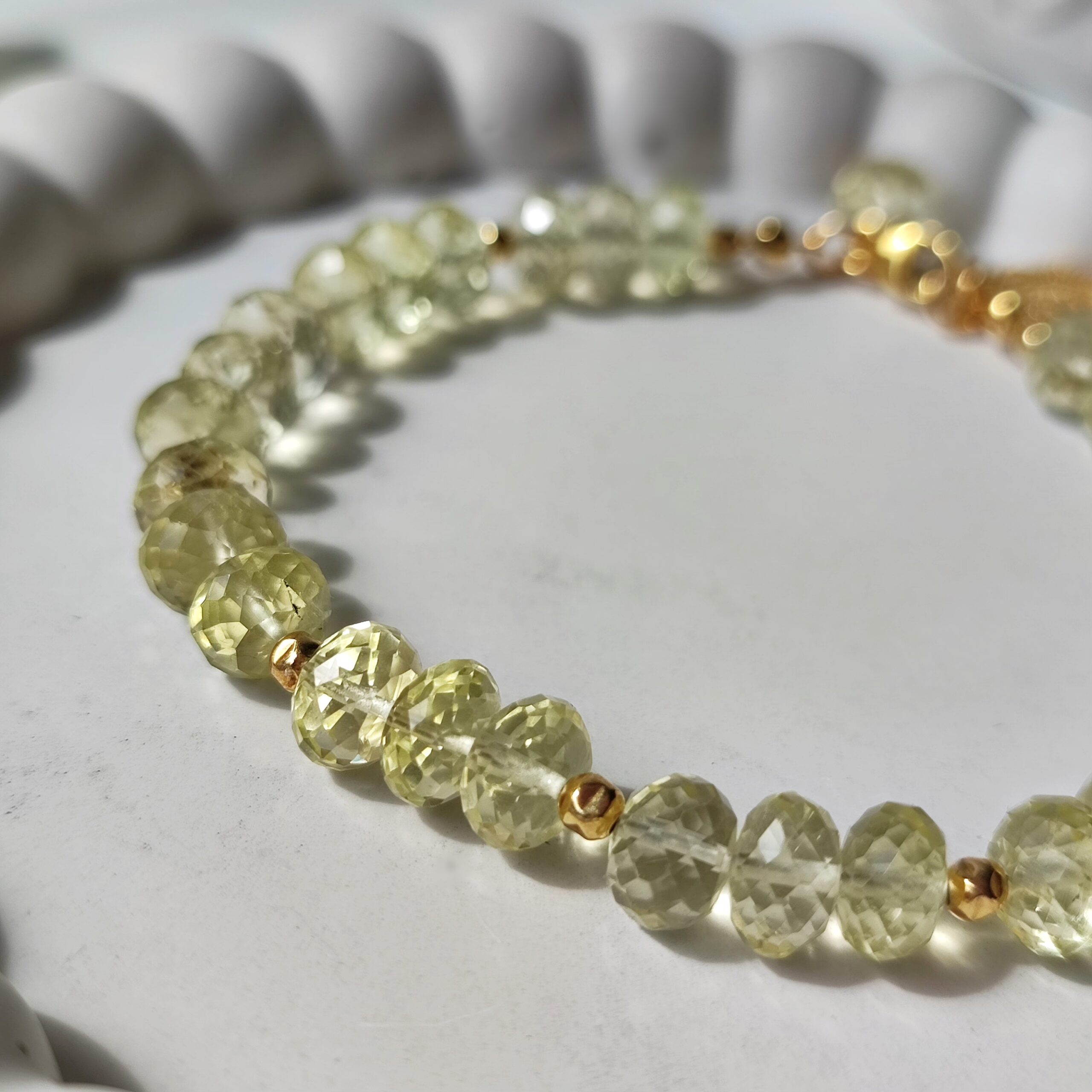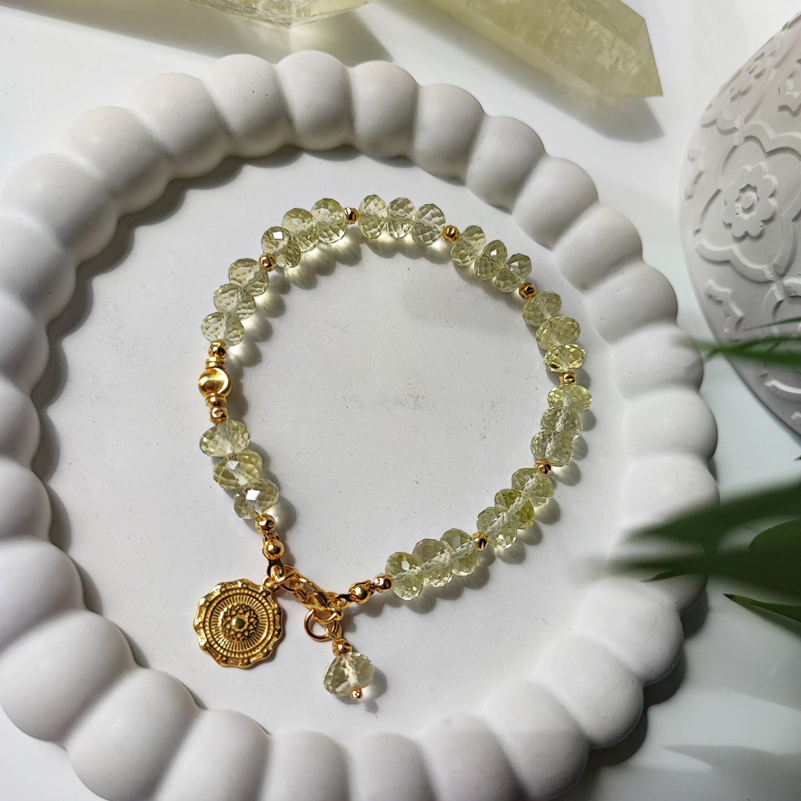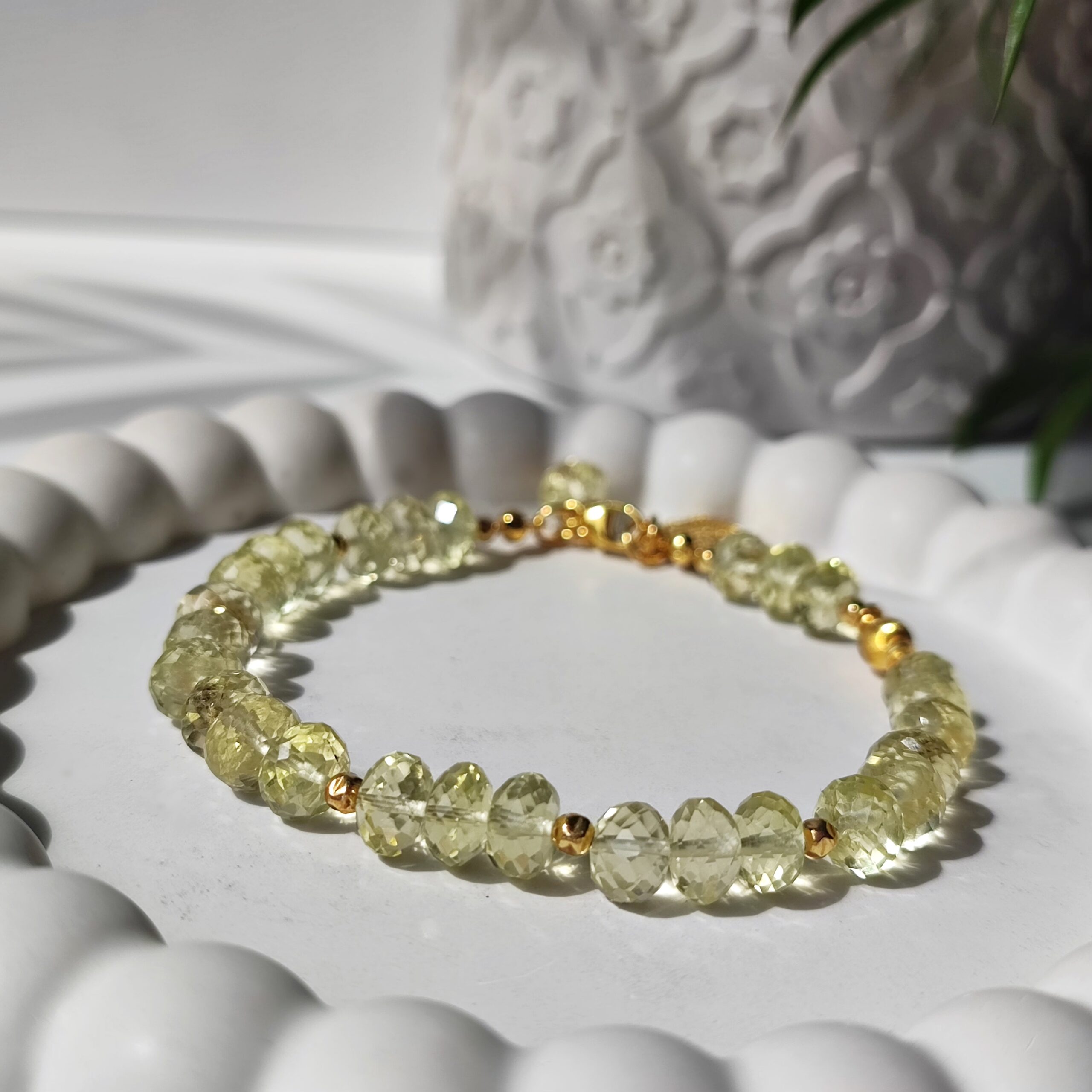 Ręcznie wykonana bransoletka z naturalnego Kwarcu Cytrynowego klasy premium oraz srebra pozłacanego 24-karatowym złotem.
