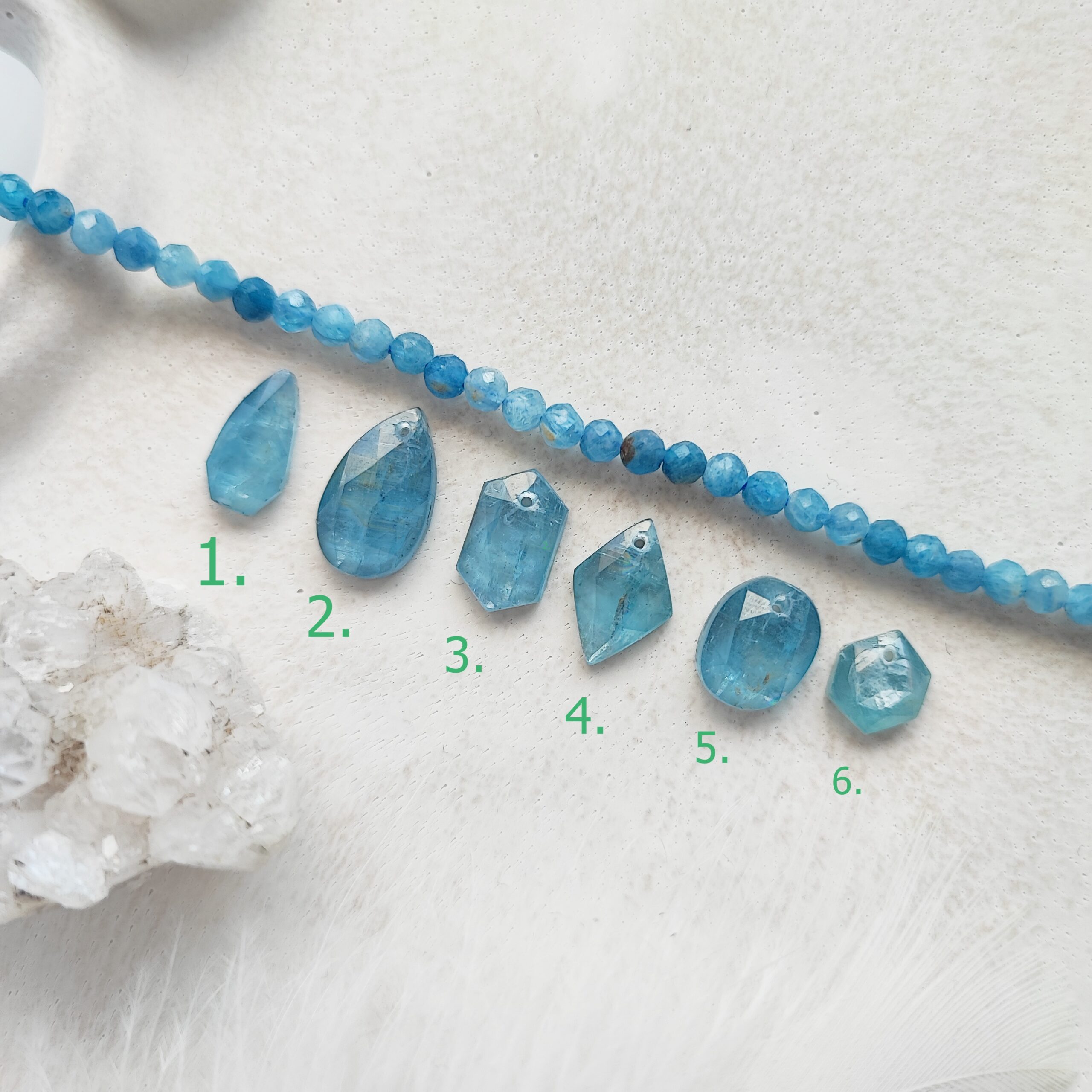 Cechy kamieni: Kianit fasetowany (kulka 3 mm), kianit – wybierz swoją zawieszkę. Podaj numer kamienia w notatce do zamówienia.