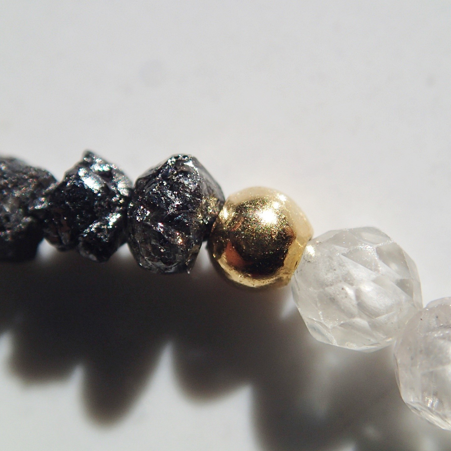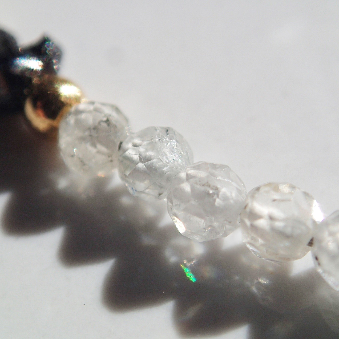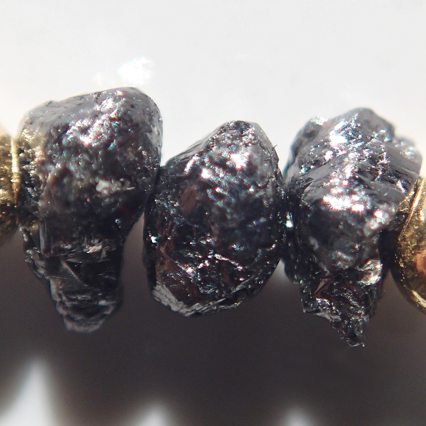 Cechy kamieni: Cyrkon – około 3 mm, kulisty fasetowany, czarny diament – nieregularny kształt, około 2-3 mm