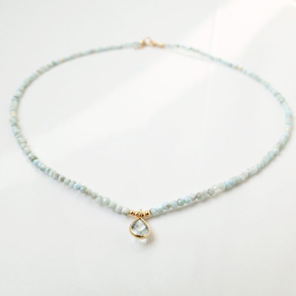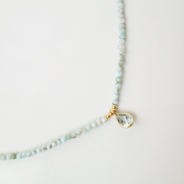 Naszyjnik choker z Larimaru i Topazu w pozłacanym okuciu